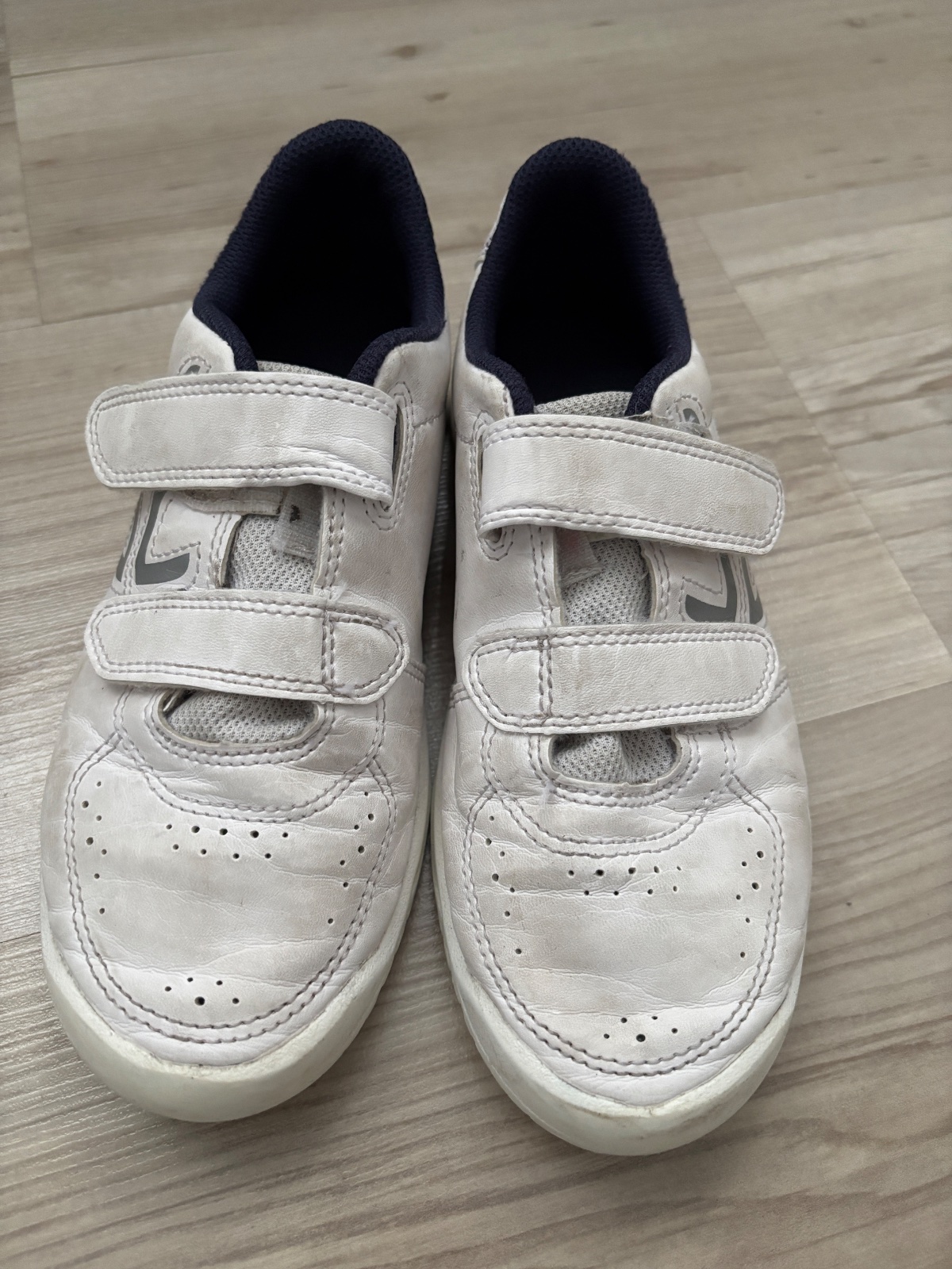 Dva páry bielych tenisiek kúpených v decathlone. Veľkosť 34, 21,5 cm. Tenisky sú dosť nosené, ale nemajú žiadne diery, vyzerajú tak ako sú nafotené. Cena je za oba páry spolu, pri kúpe jedného páru...