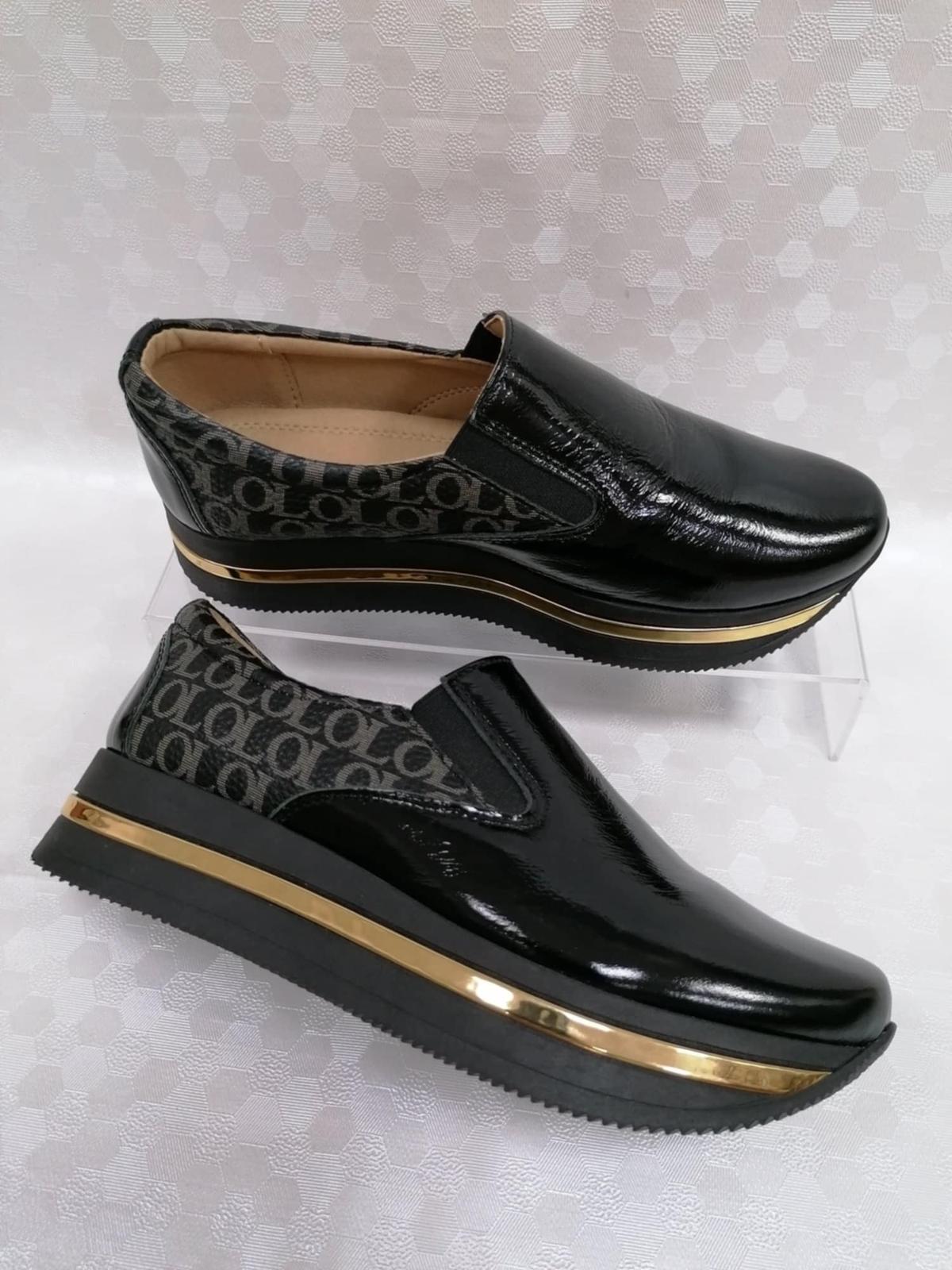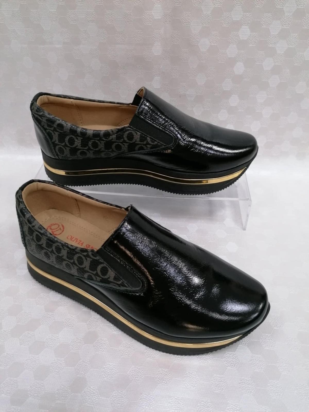 Čierne luxusné poltopánky od slovenskej značky Olivia shoes v novom nadčasovom dizajne. Obuv je vyrábaná z kvalitných materiálov, sú maximálne pohodlné a ľahko kombinovateľné. Sú štýlové, neprehliadnuteľné a sú spojením casual a športového štýlu. Vyššia platforma zaručí lepší komfort pri nosení počas celého dňa. Model bez šnurovania pre maximálne rýchle a jednoduché obúvanie. Tieto topánky sú ideálna voľba na jesenné dni.