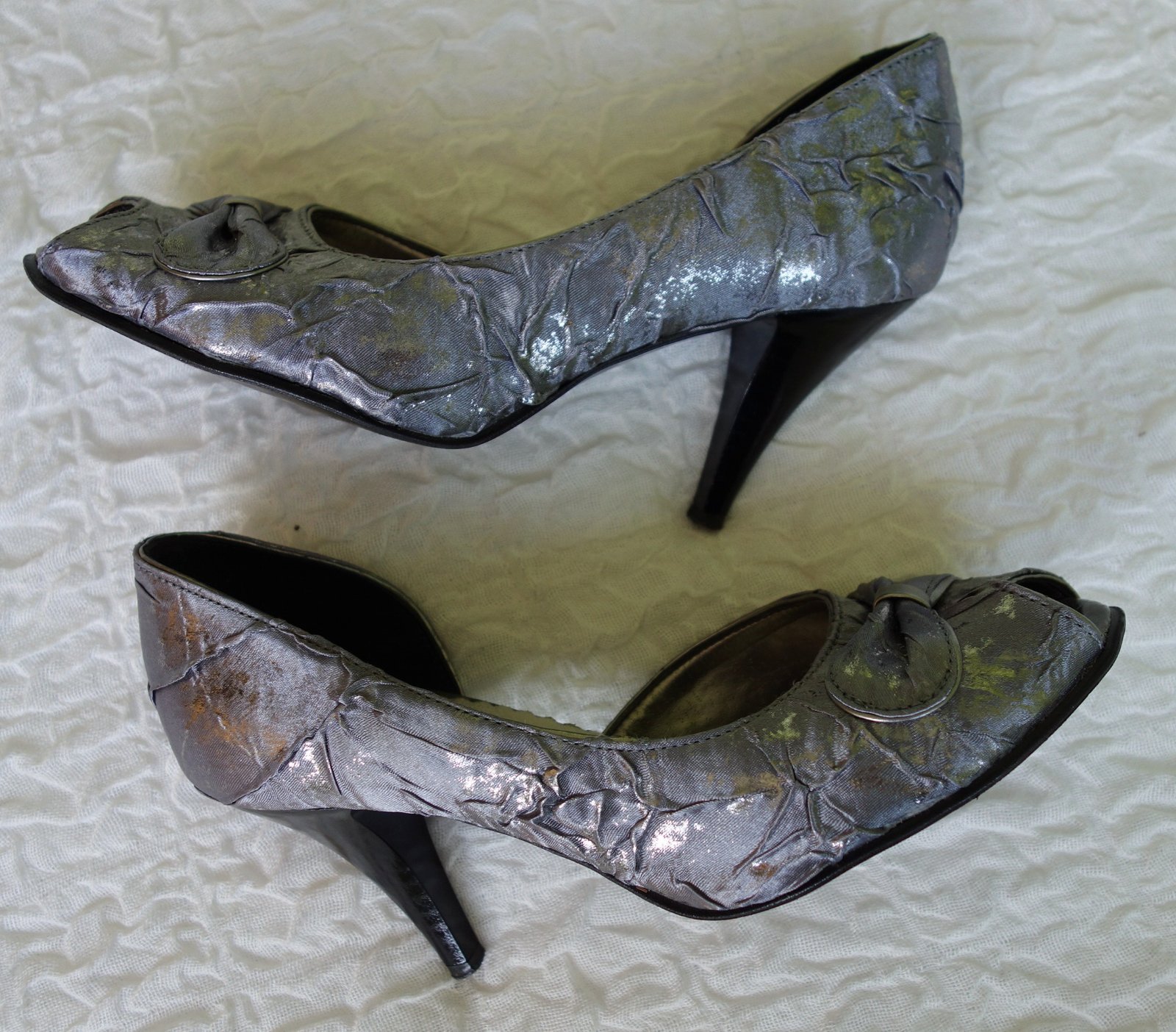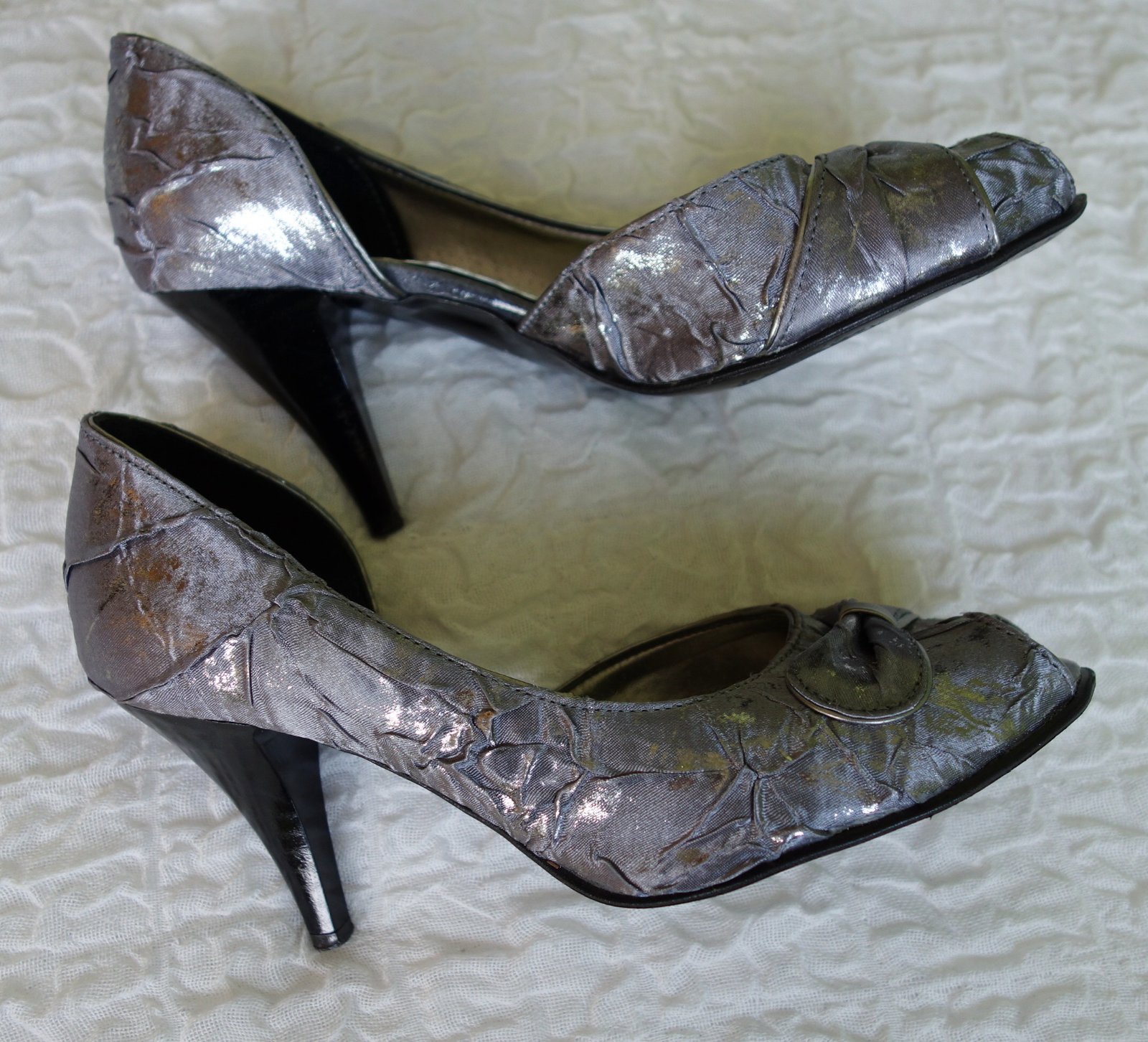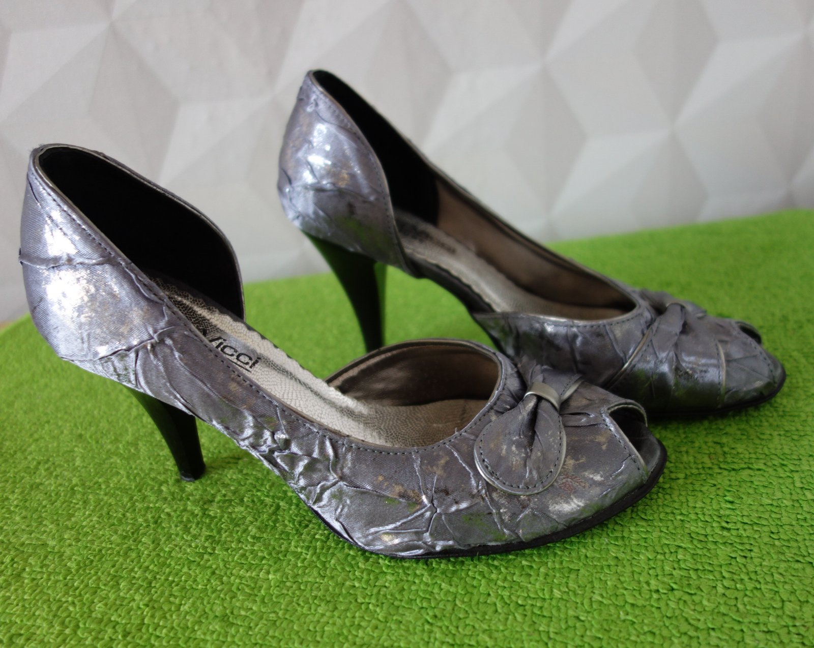 Elegantné, kožené lodičky zn. Arturo Vicci Colldeione, veľ.36, vnútorná dĺžka 23cm, opätok je stabilný, 7cm vysoký. Farba svetlá sivá, so striebristým odleskom.