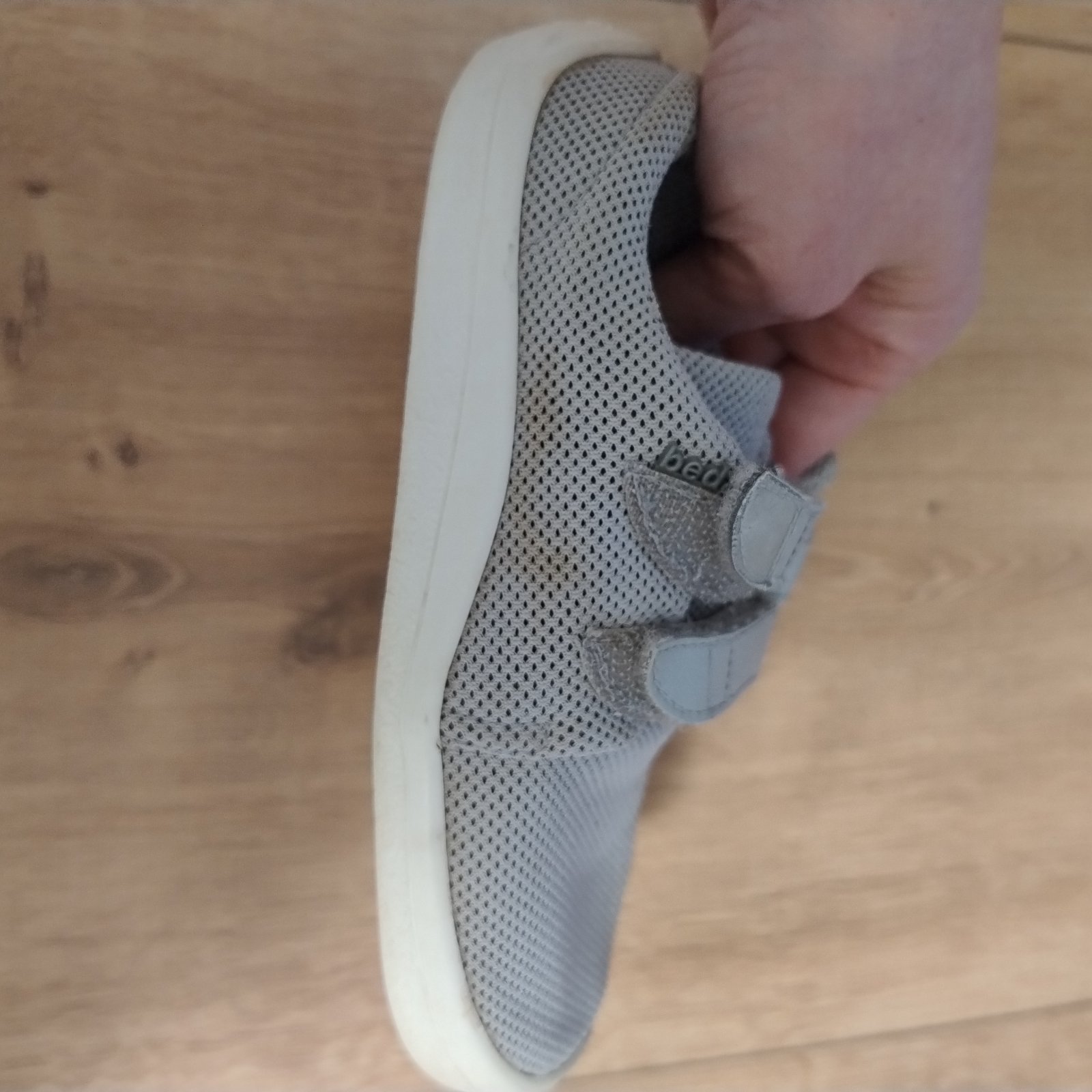 Stav ako na fotkách, oškretá guma vpredu a šuchnuté päty. Napriek ručnému praniu zostali na sieťke škvrny (na foto výraznejšie ako naživo), ale na ihrisko ešte poslúžia. Suchý zips pekne drží.