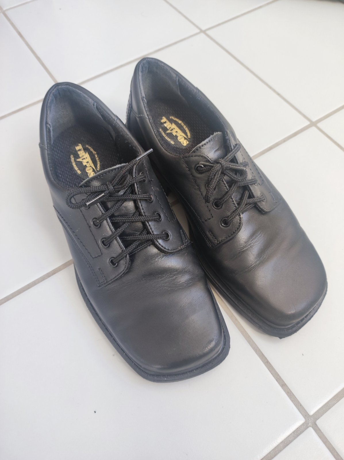 Pouzite 2x, trosku okopnuta spica, zatrela som ciernym kremom na topanky, takmer nevidno. Inak velmi dobry stav.