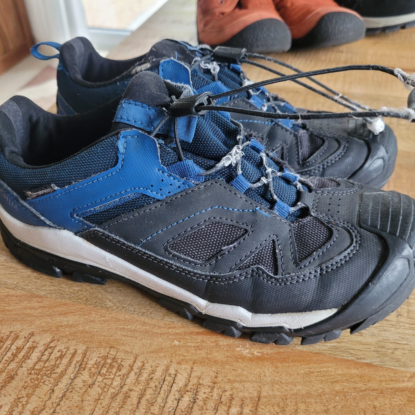 Turistické členkové topánky na šnúrky. Na turistiku v nenáročnom teréne. Pohodlné na nosenie. Bežné známky nosenia, bez funkčného poškodenia. Posledné tri foto priamo od výrobcu decathlon k týmto t...
