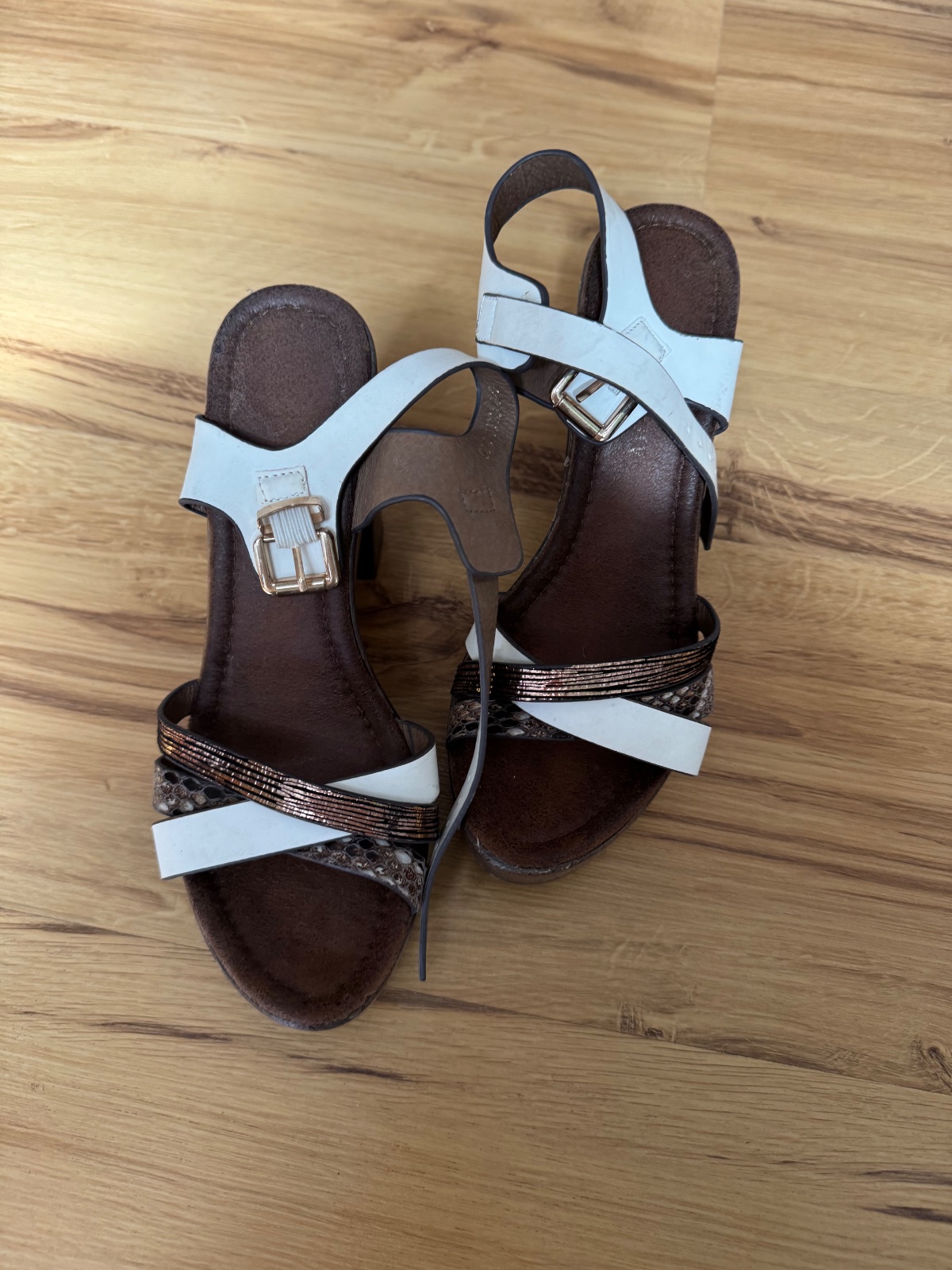 Letné sandálky, málo nosené. Špička pravej sandálky je trošku poškodená, viď foto. DT je 23 cm.