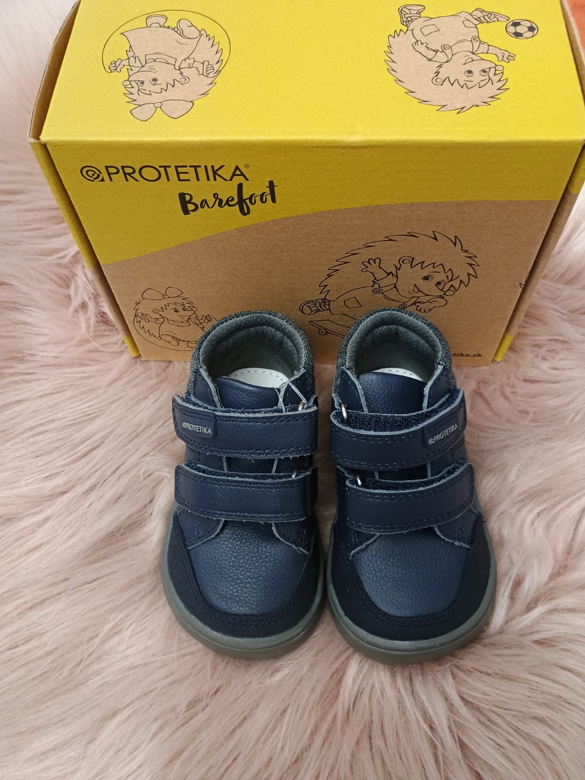 Detské celokožené topánočky od slovenskej atestovanej značky PROTETIKA, ktoré si vaše ratolesti ihneď obľúbia. Pohodlné topánky s maximálnou ohľaduplnosťou k detskému vývoju nožičiek. Kožené topánky z barefoot rady Protetika na novej vylepšenej podrážke. Špička je anatomicky tvarovaná, vhodná pre dominantný palec. Priečne aj pozdĺžne ohybná podrážka s nulovým dropom. Päta je spevnená. Rovná vyberateľná kožená stielka. Sedia na stredne široké nôžky. V porovnaní s predchádzajúcou podrážkou sa hodia aj na mierne užšie päty a členky. Obuv má nepremokavú membránu, sú vyrobené z kvalitnej kože. Zapínanie je na suché zipsy, čo ocenia hlavne deti pre jednoduchosť a rýchlosť pri obúvaní.