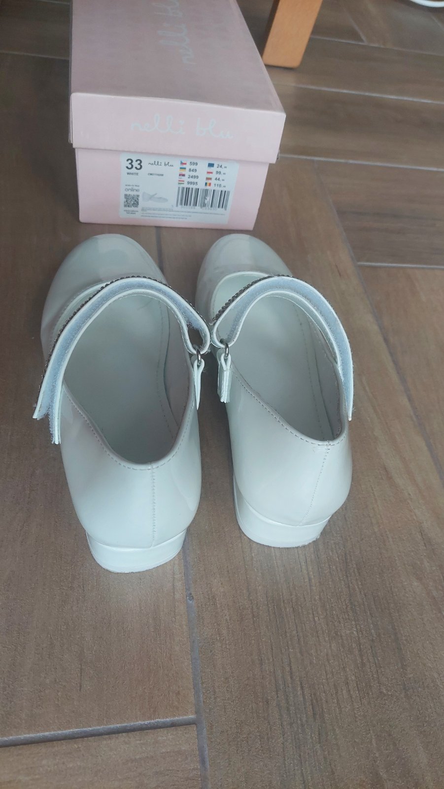 Dievčenské lakované topánky. Ako nové, jeden krát obuté. Vhodné na prvé sväté prijímanie. Vnútorná dĺžka 20,5 mm.