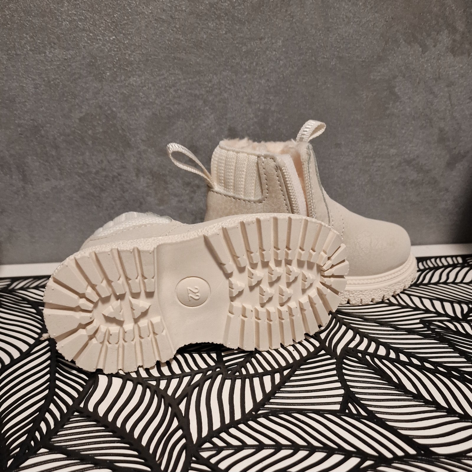 Topánočky krásne, teplucke, nosené v kočíku nechodiacim dieťaťom. Kupované na stránke eobuv. Pc 35. €. No syn sa snimi hral a poskrabal špičku. Preto je cena aká je. 🤷