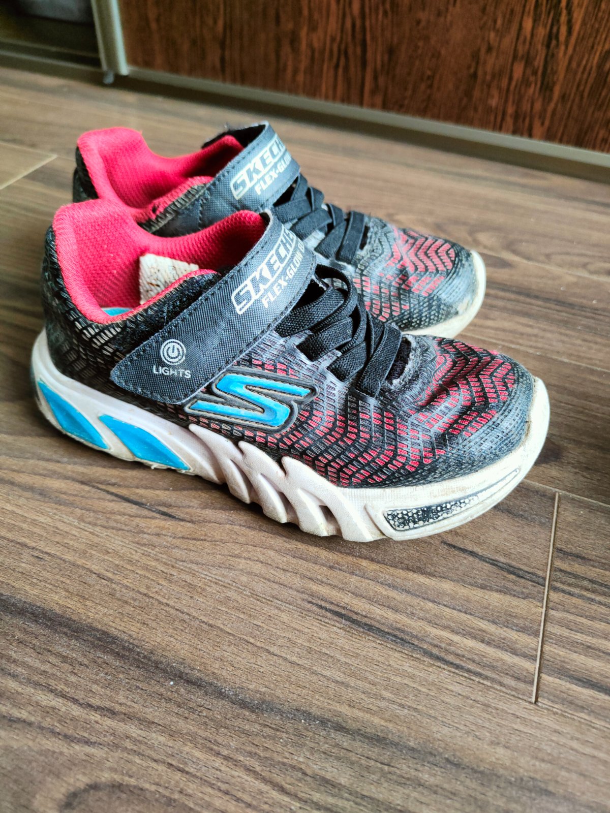 2x tenisky v. 29, 1x prechodné topánky, špičky na sketchers a na prechodných ošúchané, ale určite ešte poslúžia.