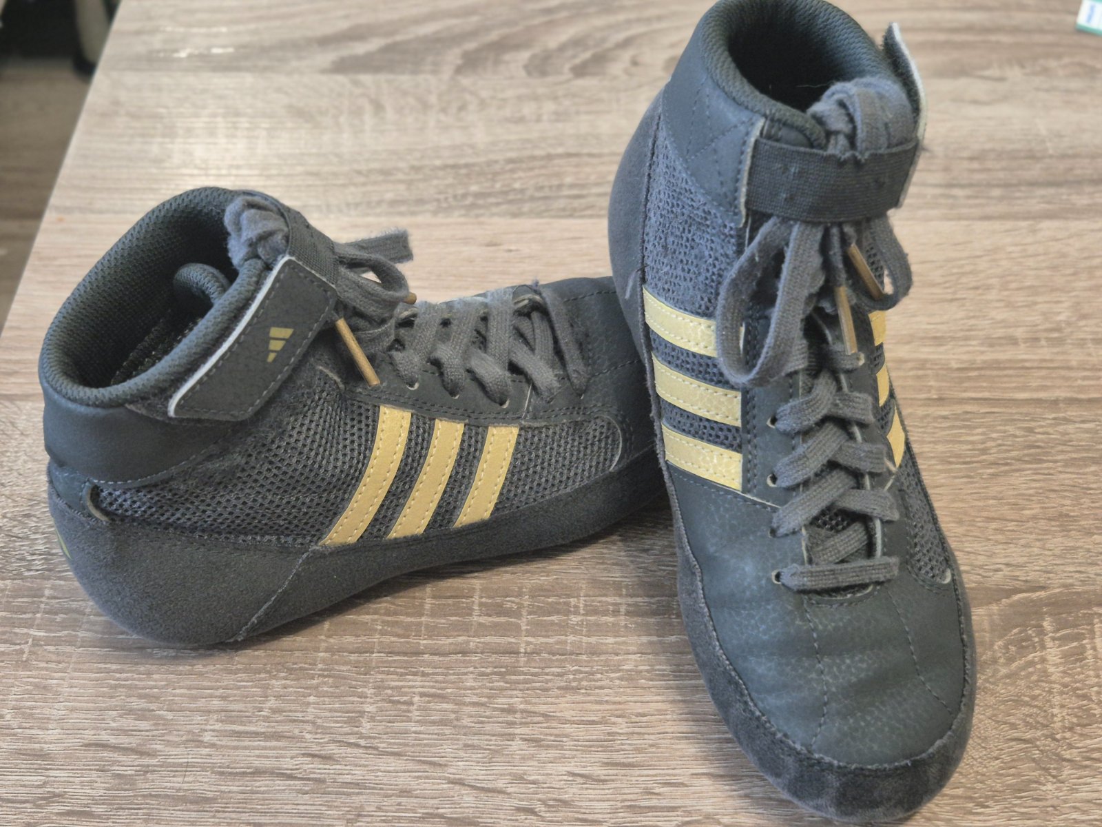 V super stave zápasnícke tenisky,farba je tmavošedá až do čierna so zlatým. Vel.34 vd 21cm