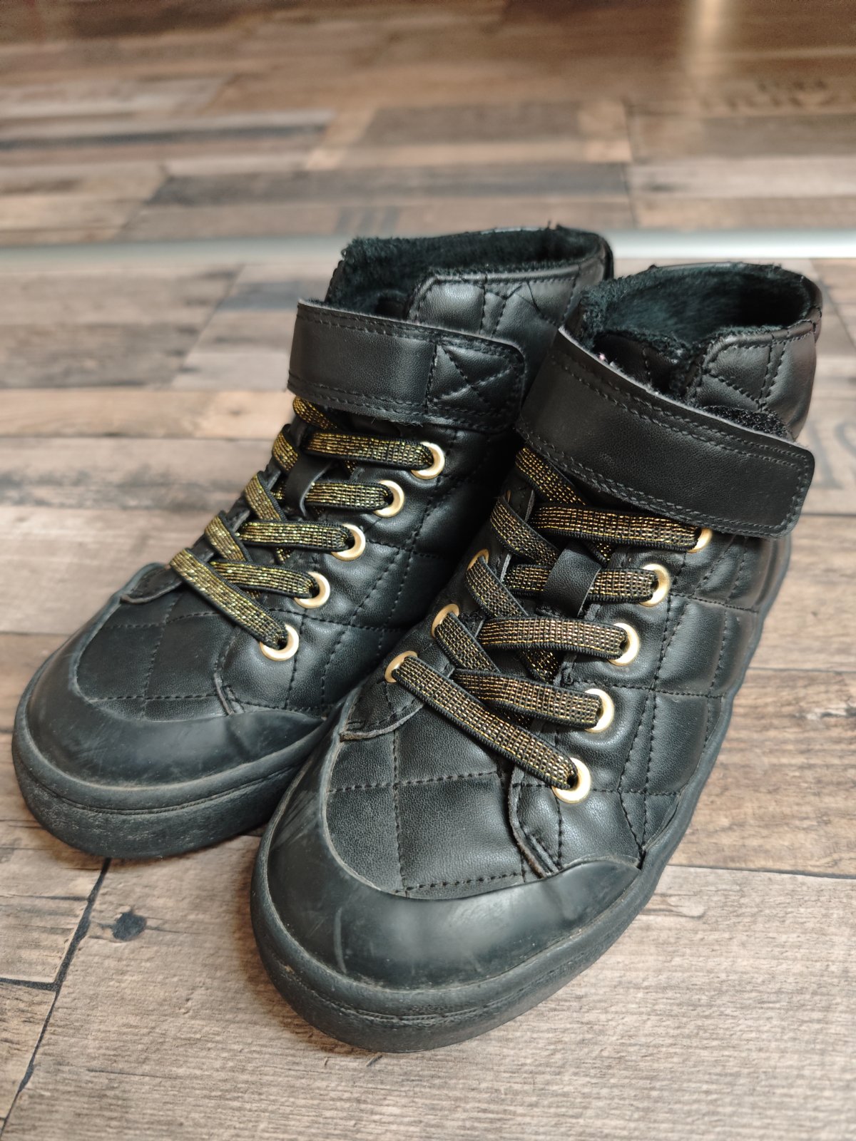 Pár krát obuté, máličko vyteplene topánky.Šnúrky sú gumickove,na vrchu zapínanie na suchý zips,skôr na chudšiu nožičku.