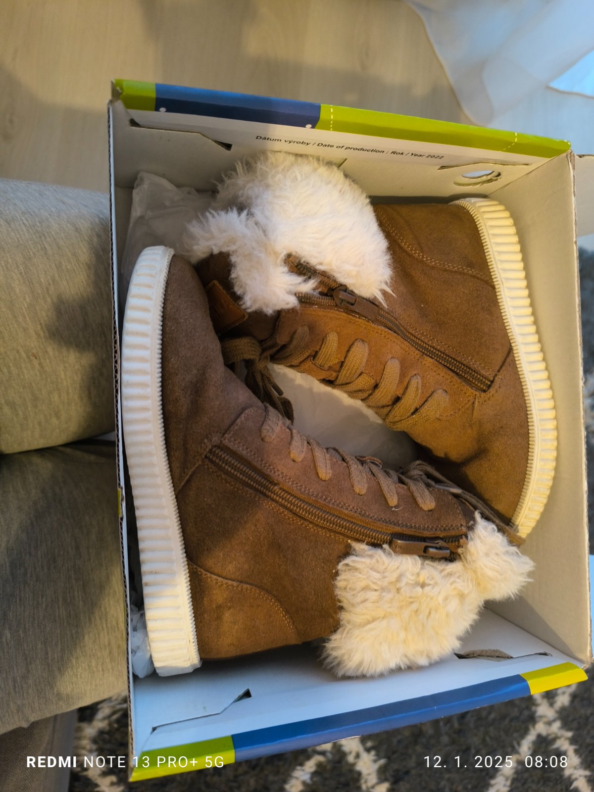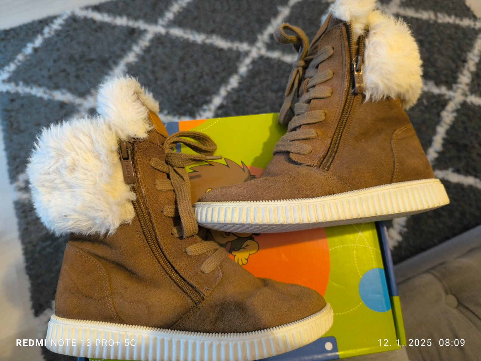Hnedo horčicové štýlové detské zimné topánky. Nosené jednu sezónu na striedačku s dalšími.