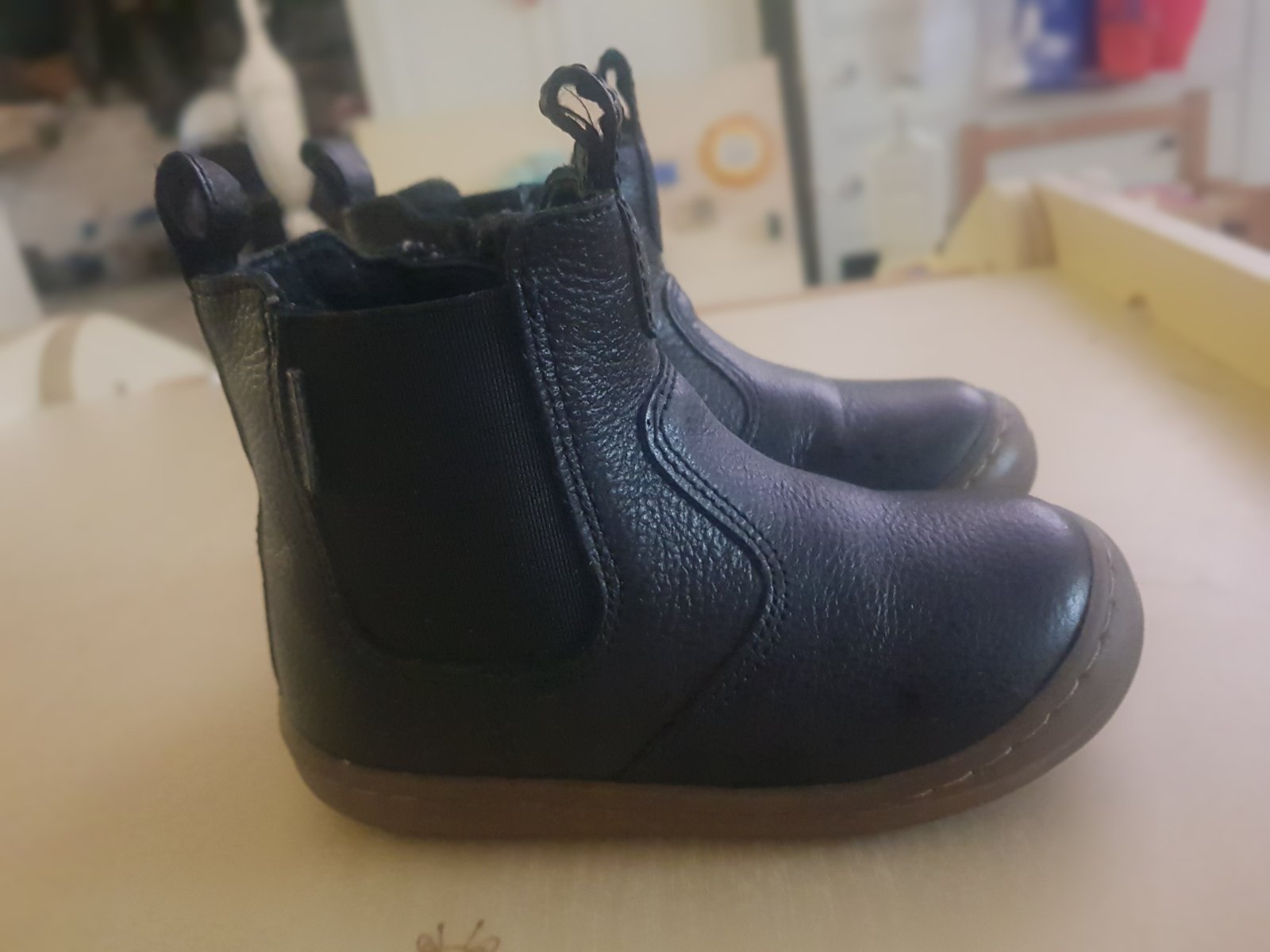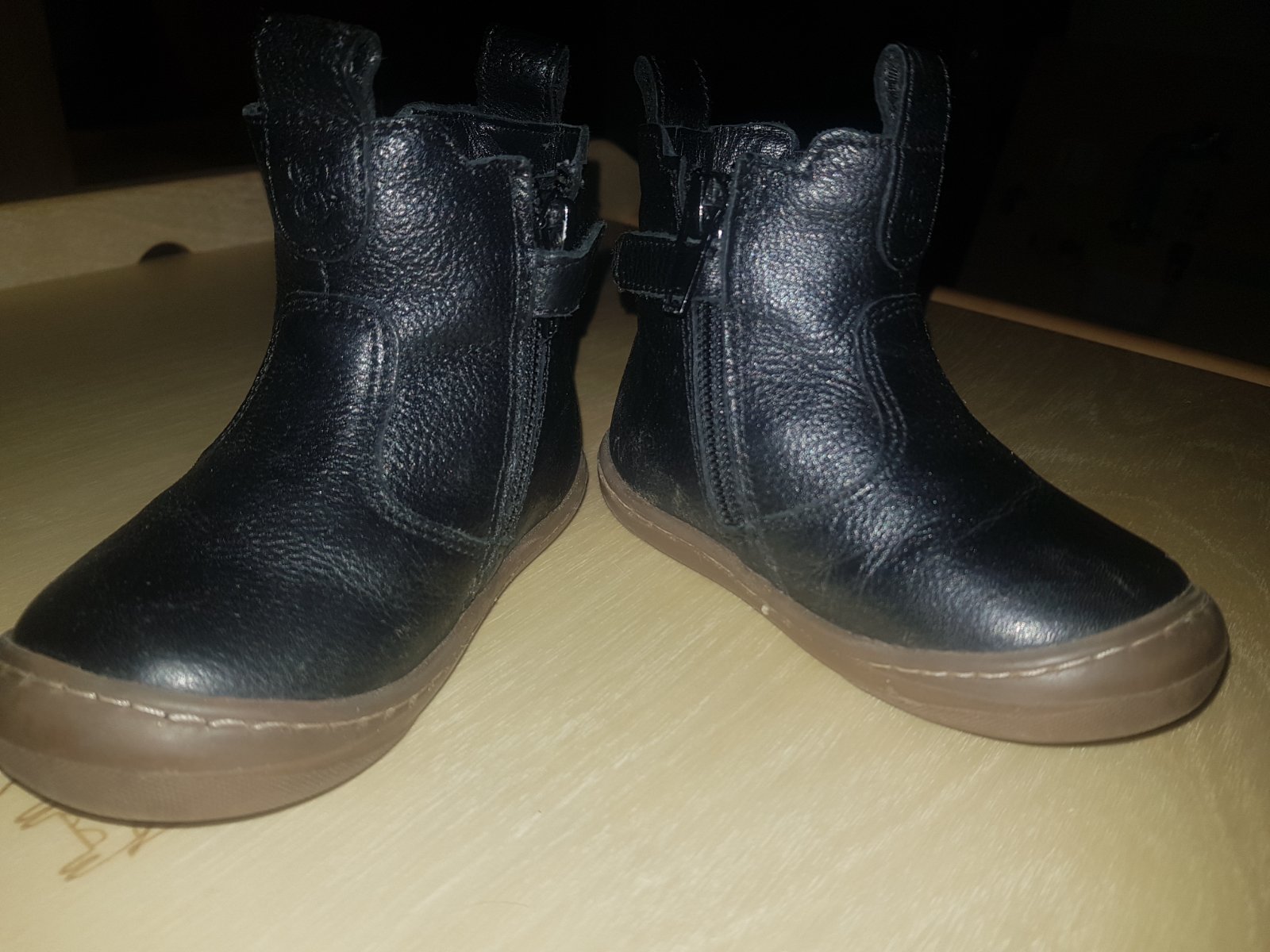Veľmi pekné koženné čižmičky vhodné pre dievčatá ale aj chlapcov.Dostali sme ich maly ich mal par krat na sebe.Skôr na užšiu nohu.Niesu nijak poskodené ani vydreté.Sú jemno zateplené ale nie moc ideal teraz na jar či jeseň.