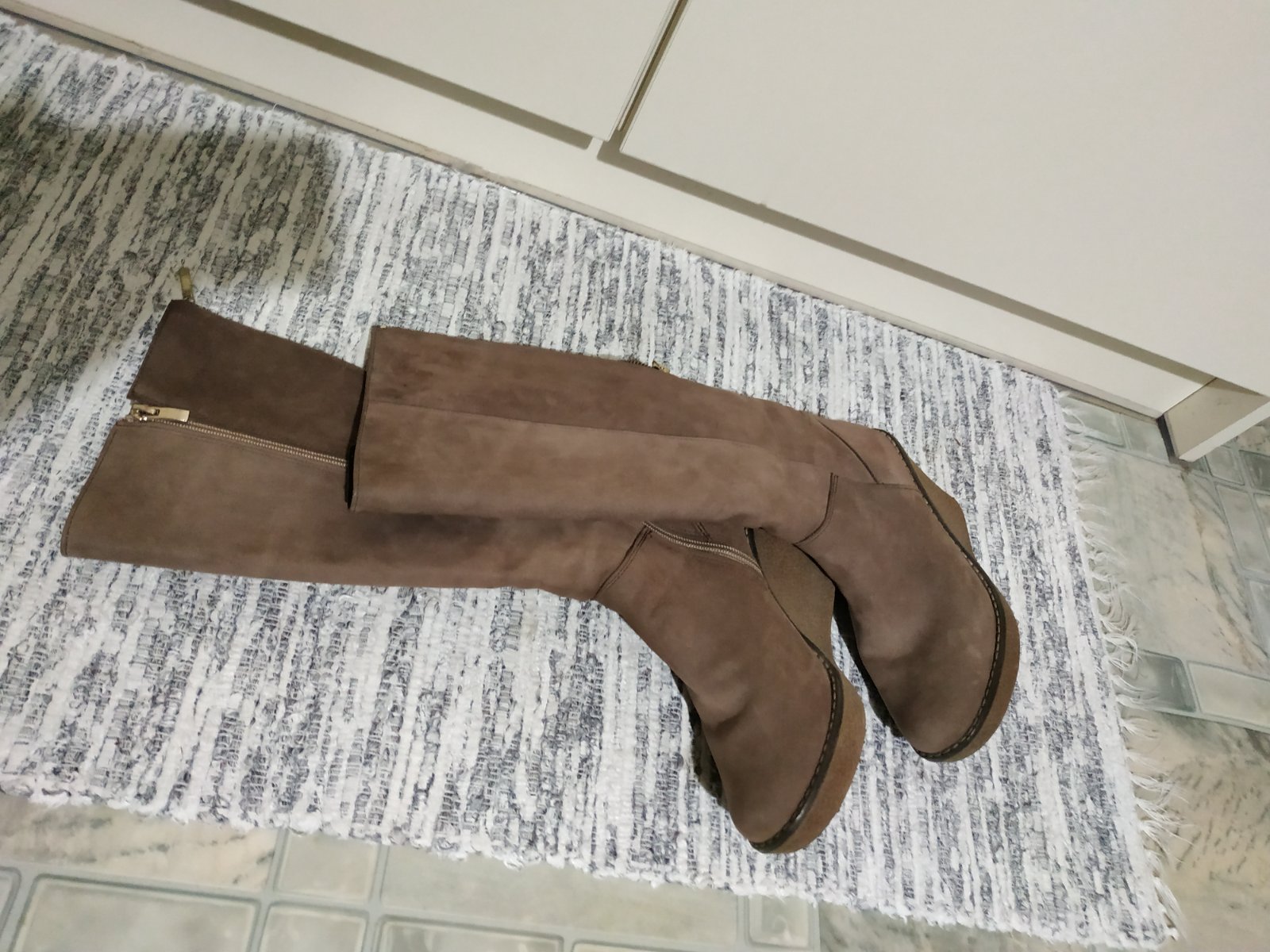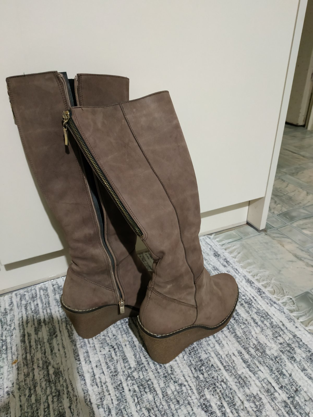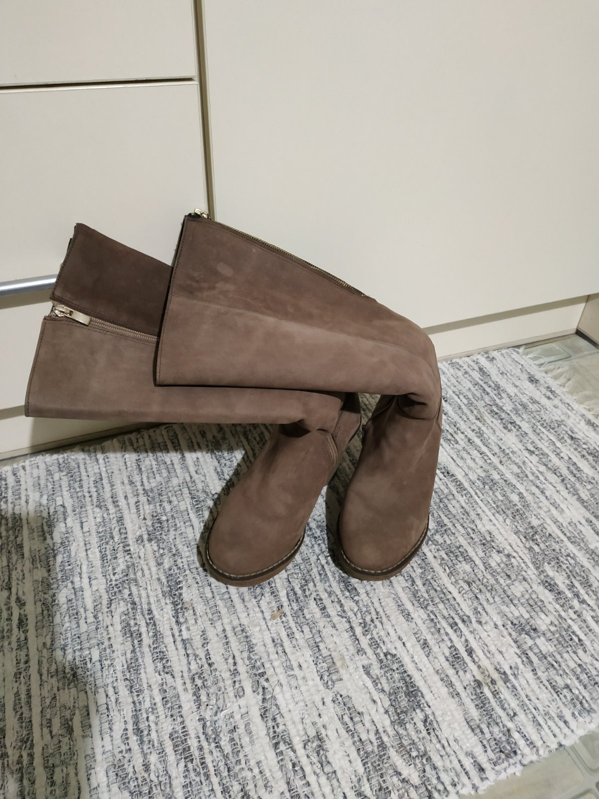Krásne čižmičky.... Brusená koža... Obuté len pár krát...ako nové, nevyčaptané... Vnútorná dĺžka 21,5 CM.. možno 22cm Max.