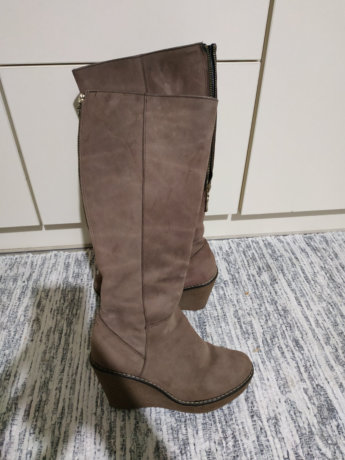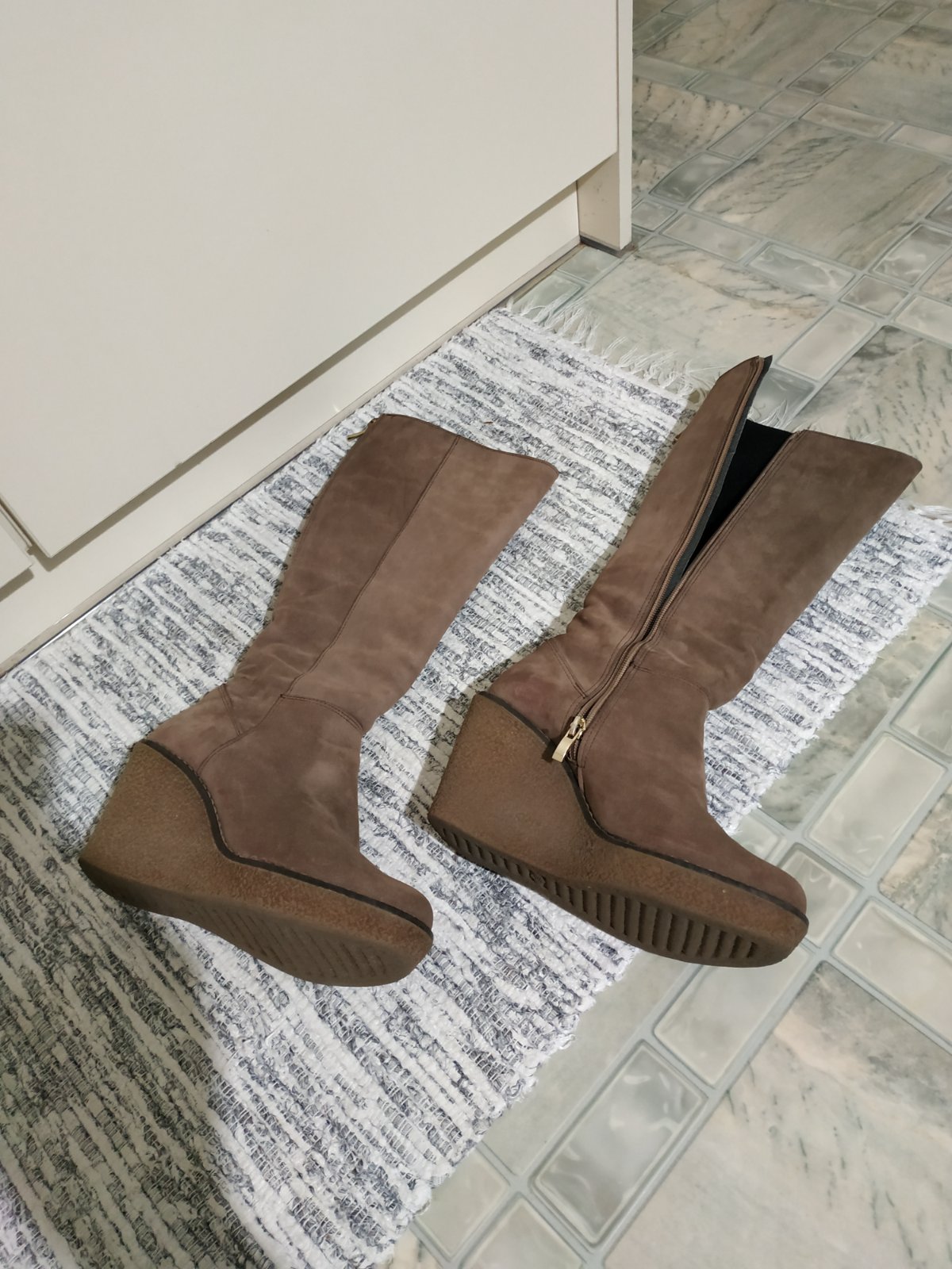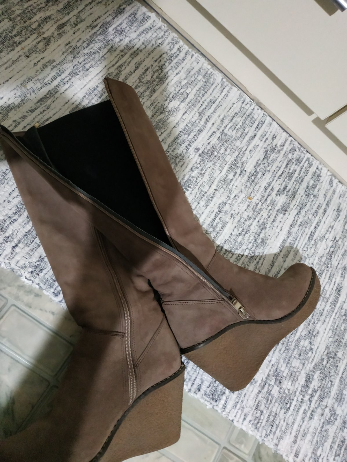Krásne čižmičky.... Brusená koža... Obuté len pár krát...ako nové, nevyčaptané... Vnútorná dĺžka 21,5 CM.. možno 22cm Max.