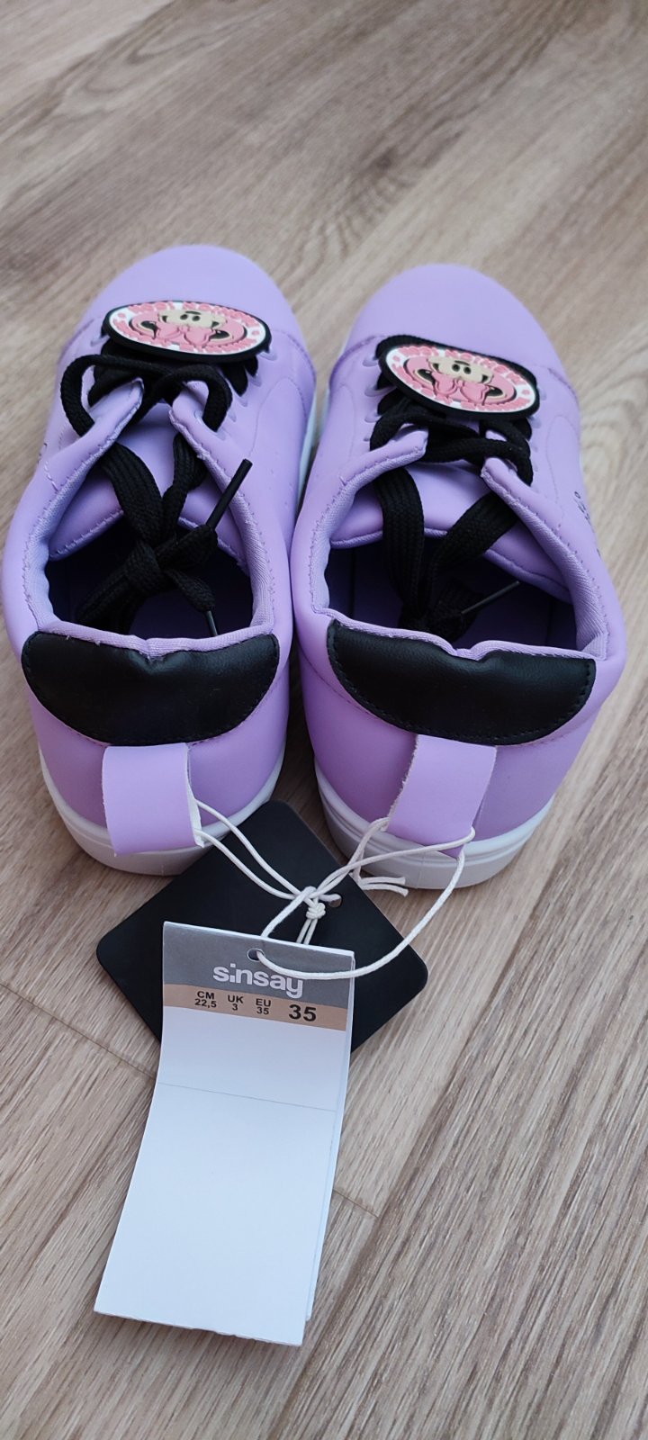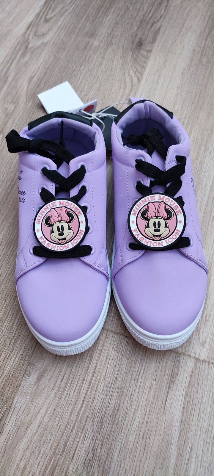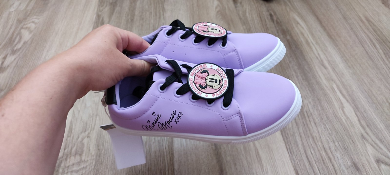 Nove s visackou, material nieco ako umela koza navrchu, levandulova farba, Minnie, Sinsay, velkost 35, namerana vnutorna dlzka 23cm (oficialne na stitku 22,5cm)
