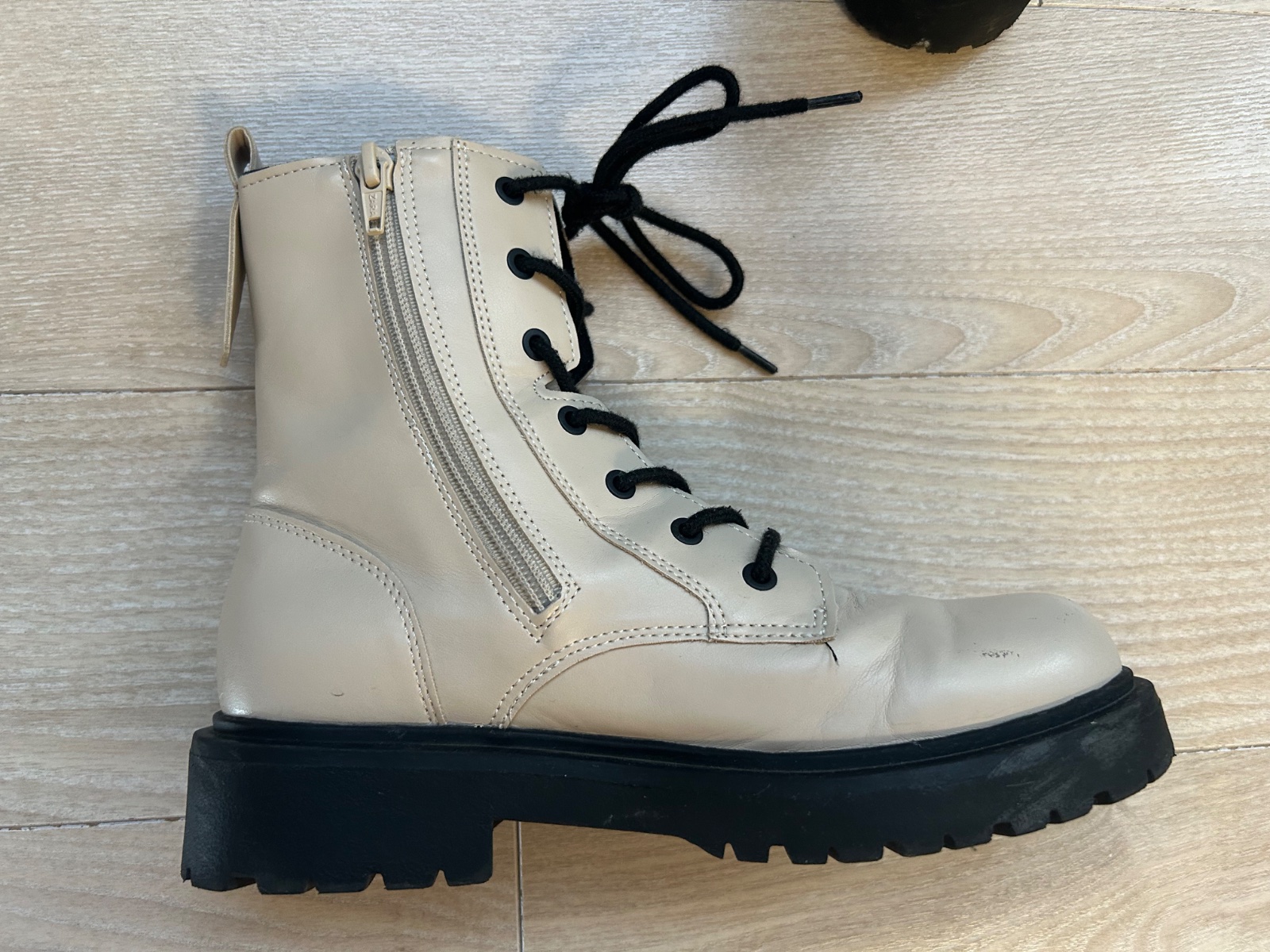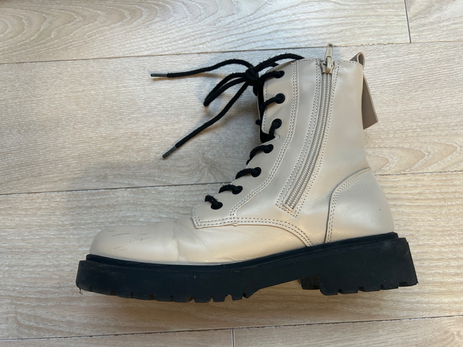 Pohodlne snurovacie topanky, z vnutornej strany zapinanie na zips, v top stave, nosene spolu s inymi topankami, vid fotky
