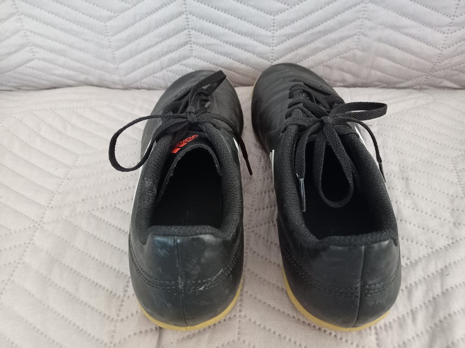 Zvnútra na päte predratá látka. Na špičkách odreté z gumy,diera tam nie je. Cena zodpovedá stavu.