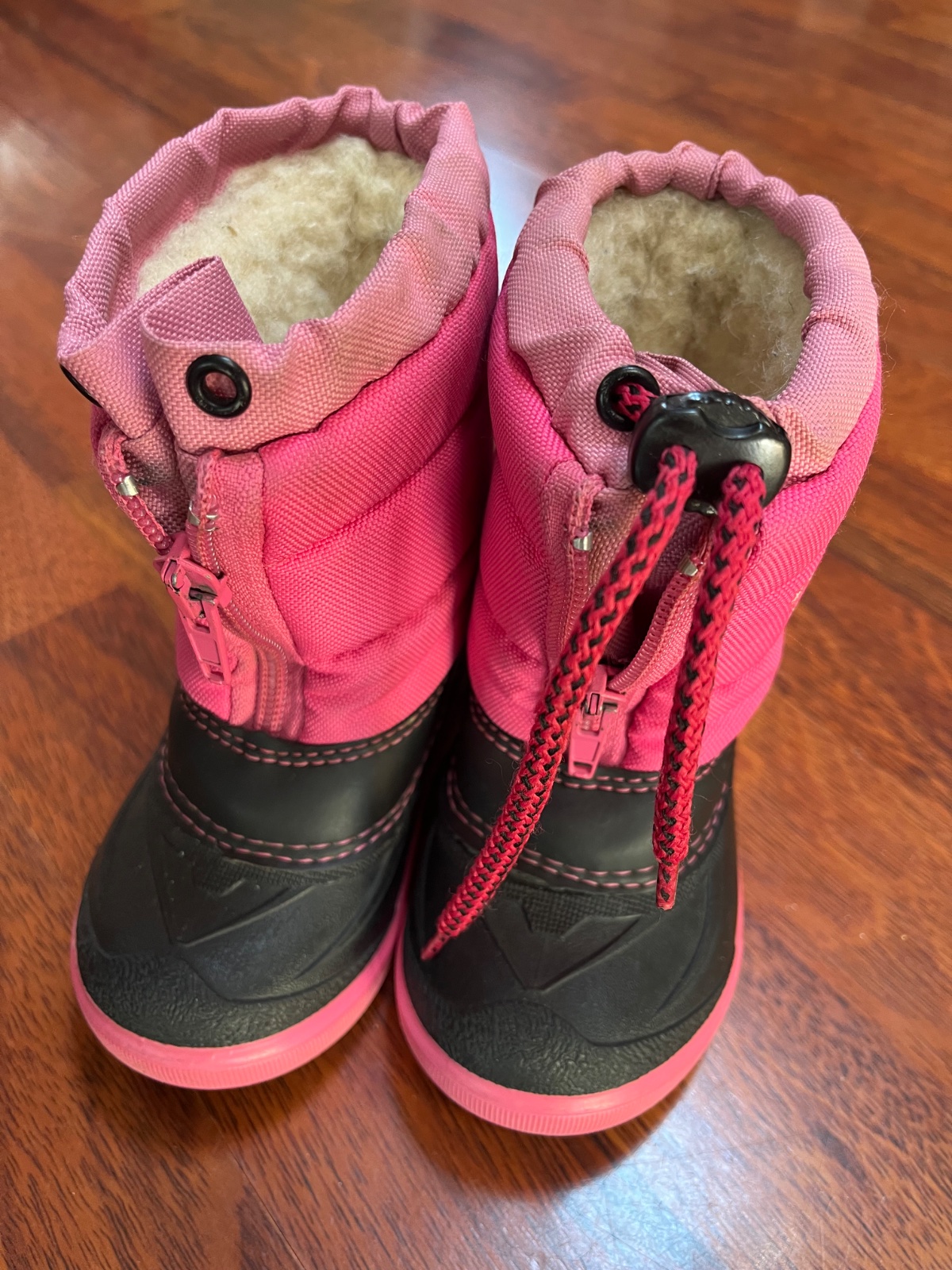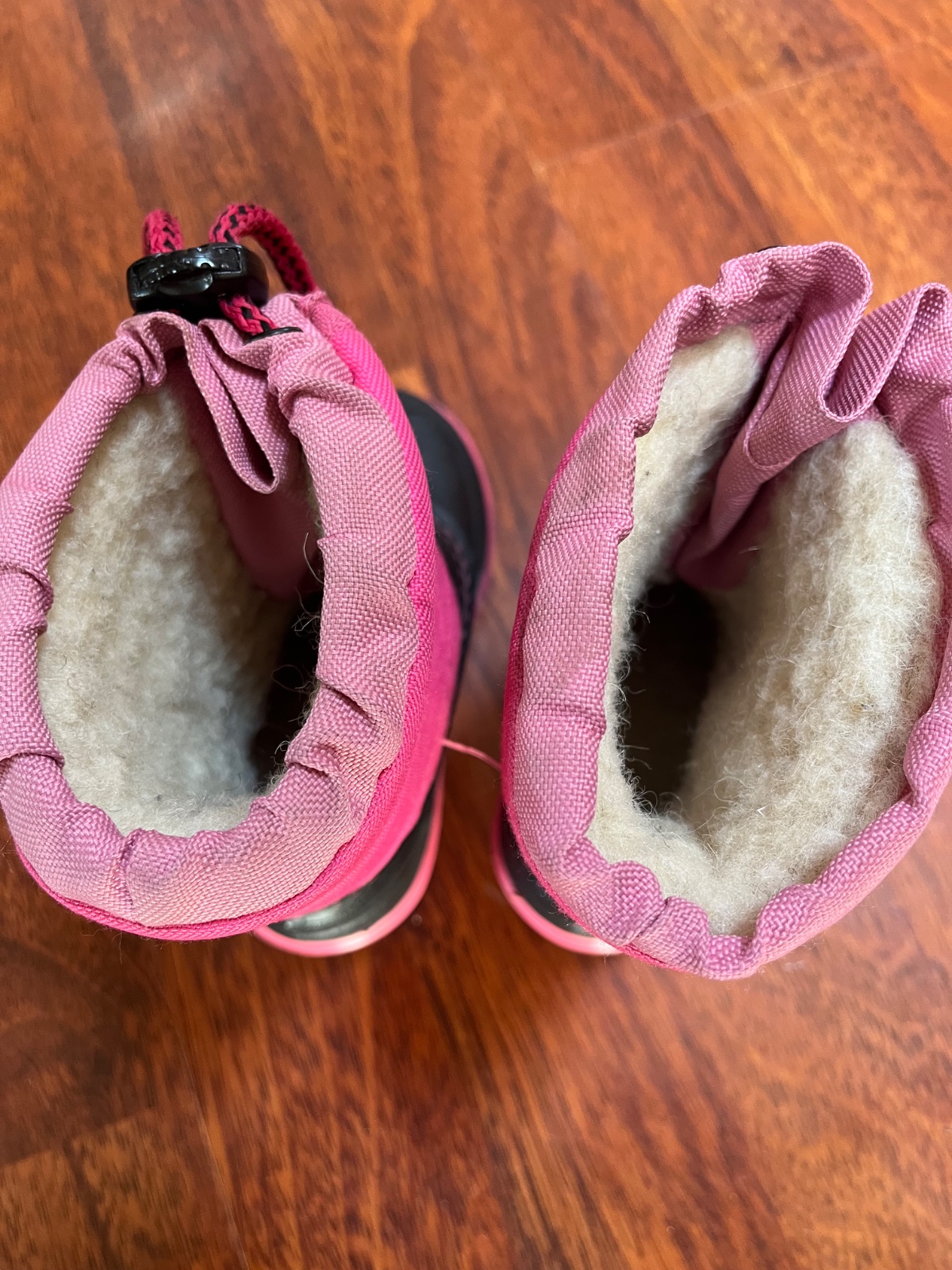 Ahojte. Predám tieto snehule pre dievčatko. Pekný noseny stav, nepremokavé, zateplené ovčim runom. Perfektne sa obúvajú, môžem len a len odporučiť. V skutočnosti oveľa krajšie. Vnútorná dĺžka 13cm.