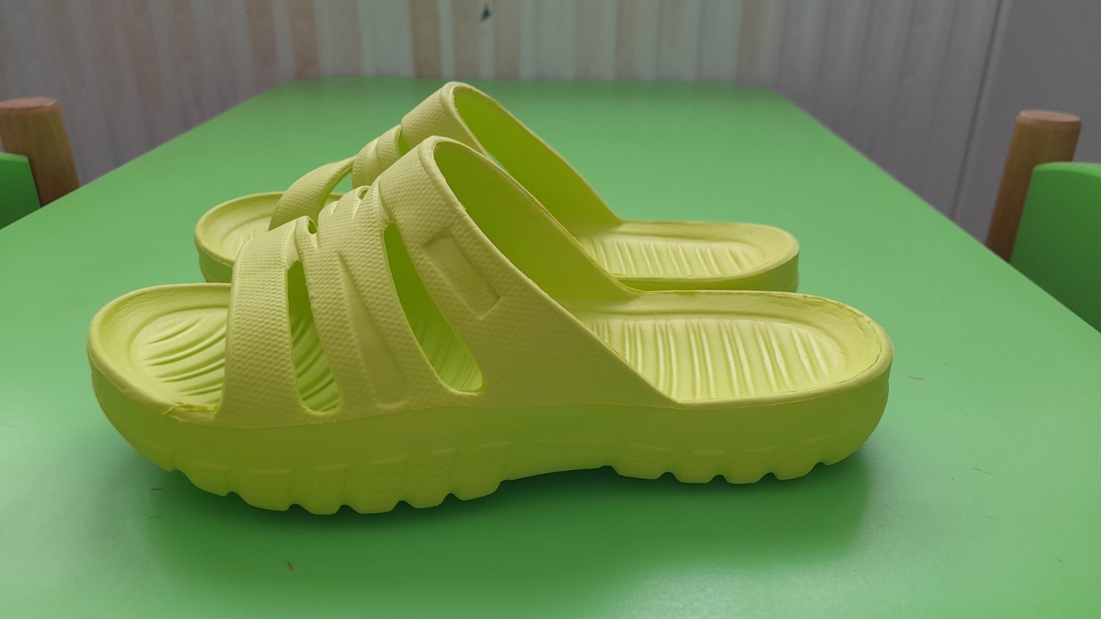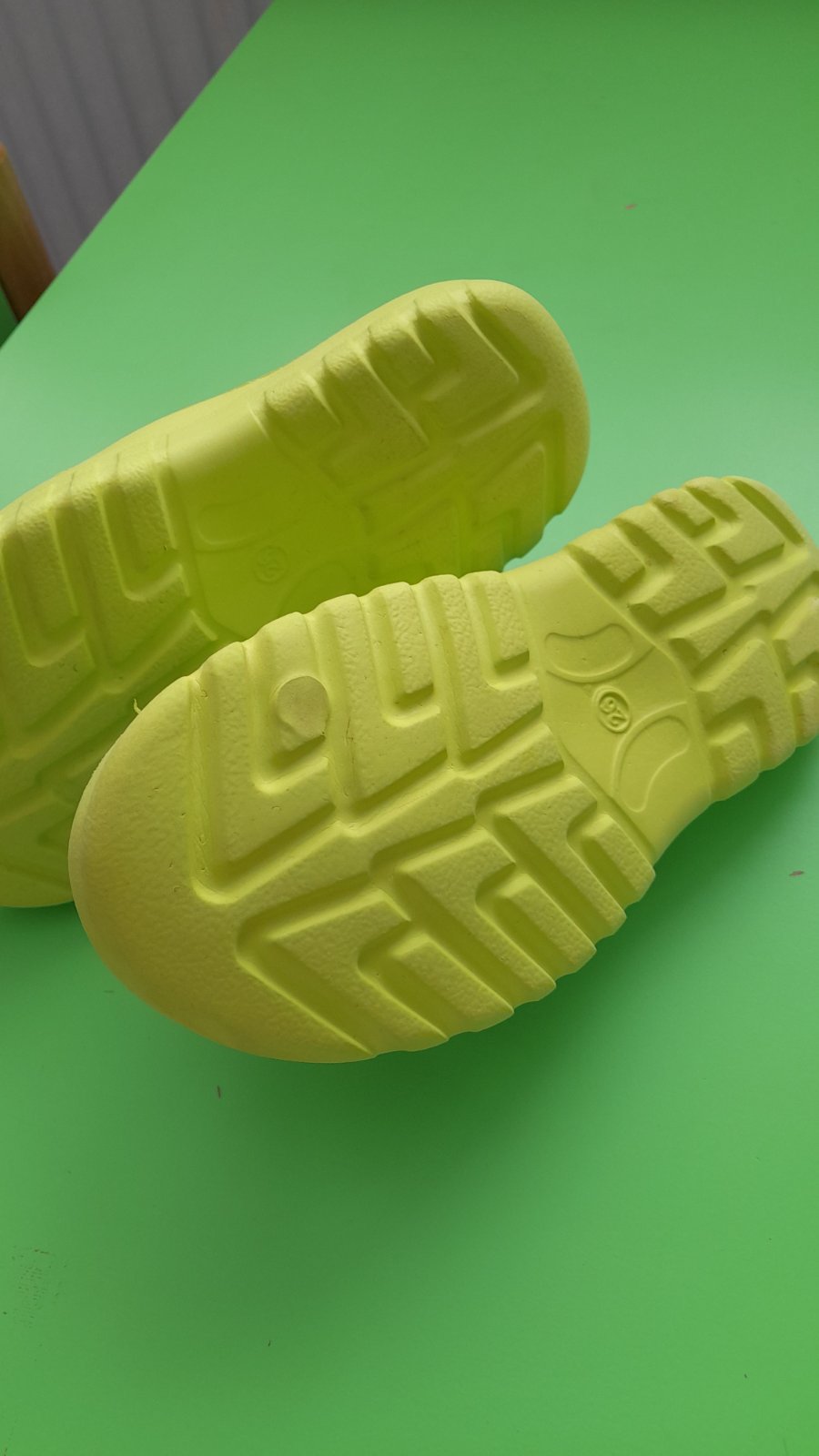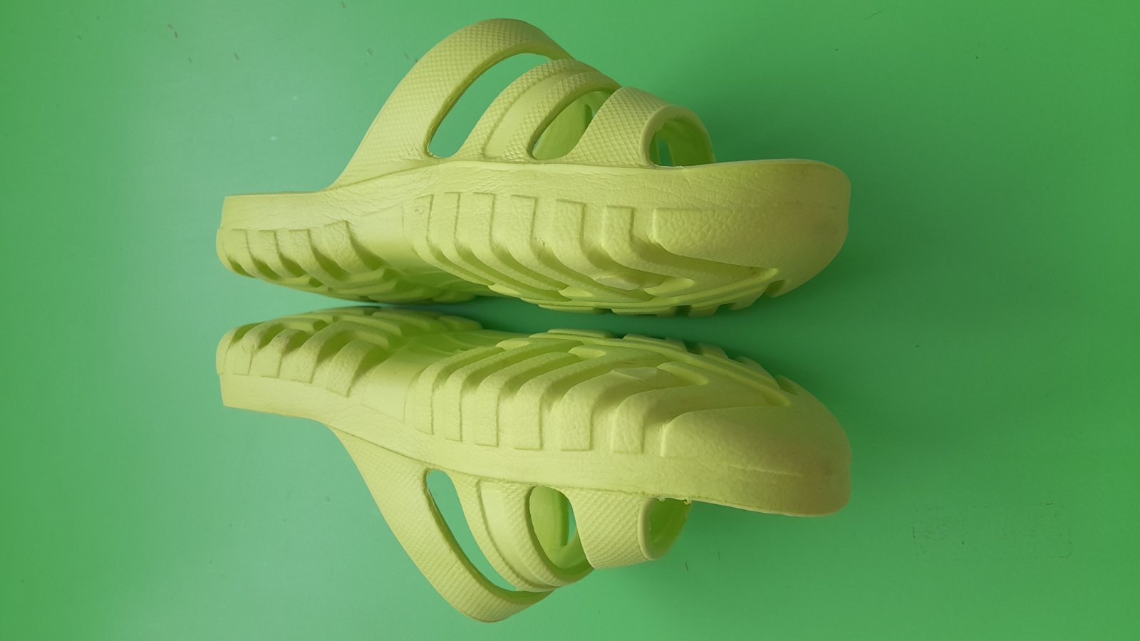 Kriklavo zelene resp. zelenozlte slapky k vode, na leto, kupko a pod. Pekny zachovaly stav, bez vyraznych znamok nosenia. Vycistene, pripravene na nosenie.