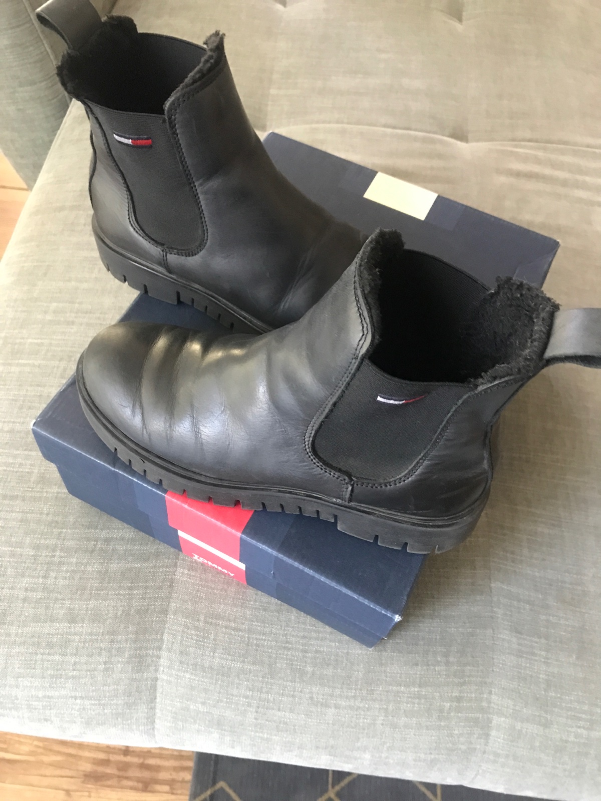 Kozene zateplene uzasne kotnikove topanky Tommy Jeans kupivane v Office predajni v 02/25. Dcerka nosila asi 1-2 mesiace na striedavku s teniskami. Uz su male :( Vrelo odporucam.