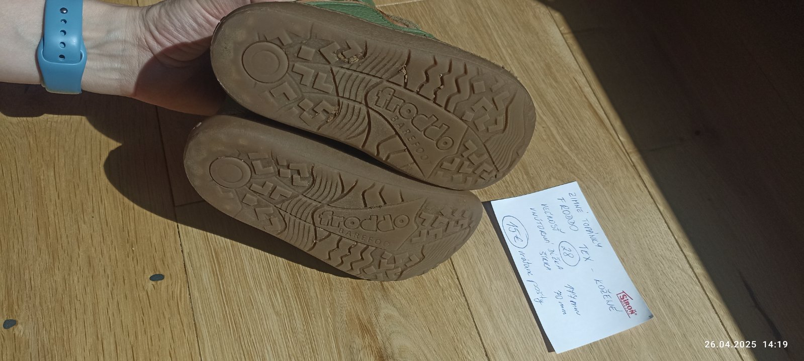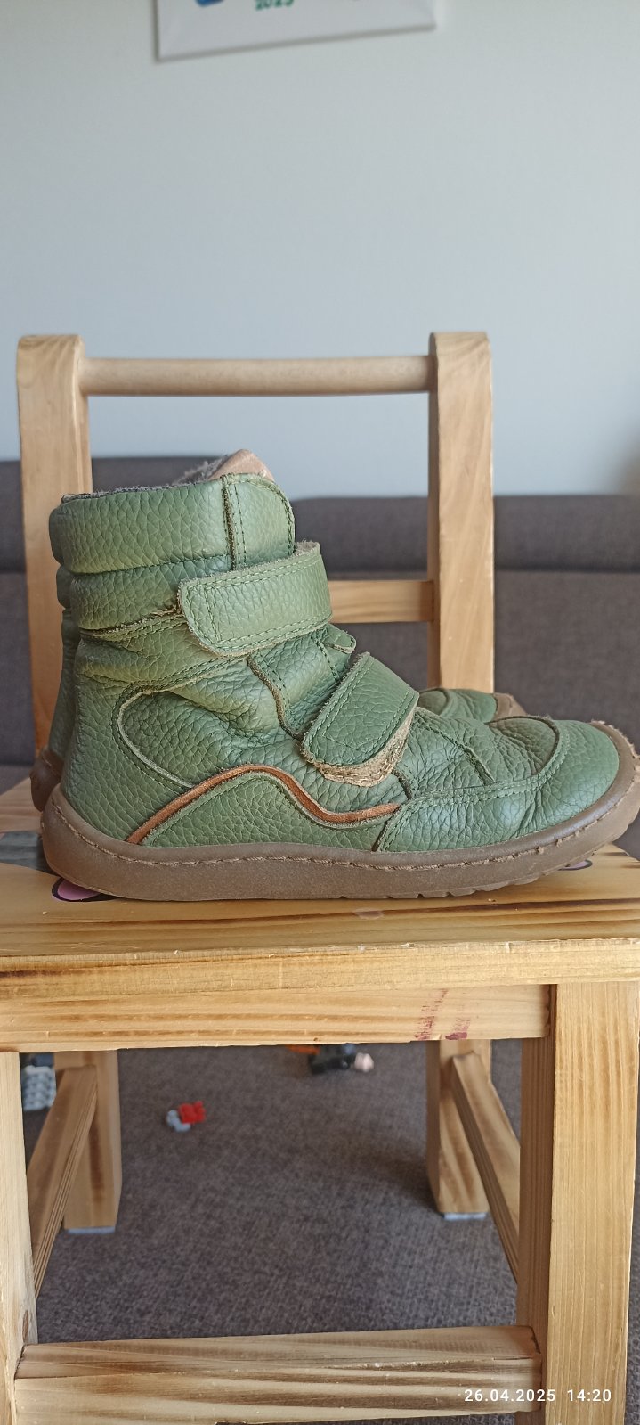 Minuly rok kupovane, 1 zimnu sezonu nosene barefoot Froddo. Vyborny stav. Paty lahko zoslapane. Suche zipsy drzia. Impregnovane. K dispozicii aj faktura. Velk 28 VD 185mm VS 72mm