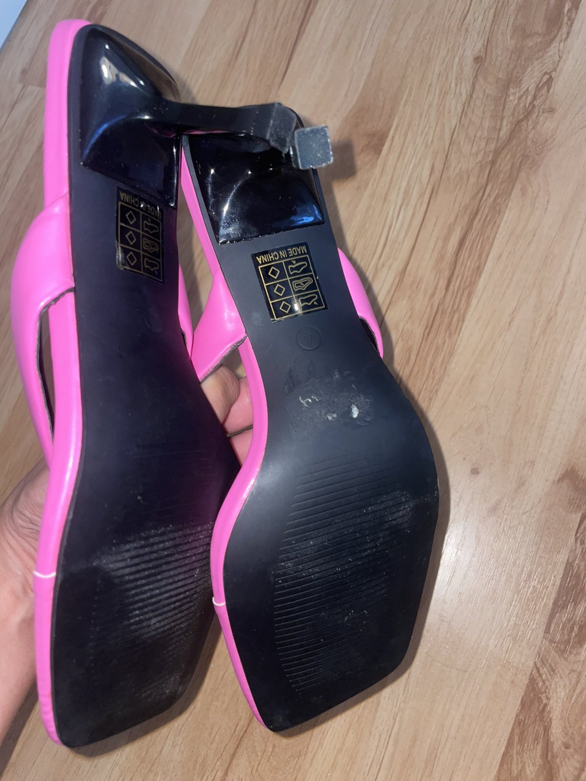 Sýto ružové, pohodlný čierny opätok, mini poškodenie vpredu v dôsledku nesprávneho skladovania, zatrela som fixou, veľkosť 37