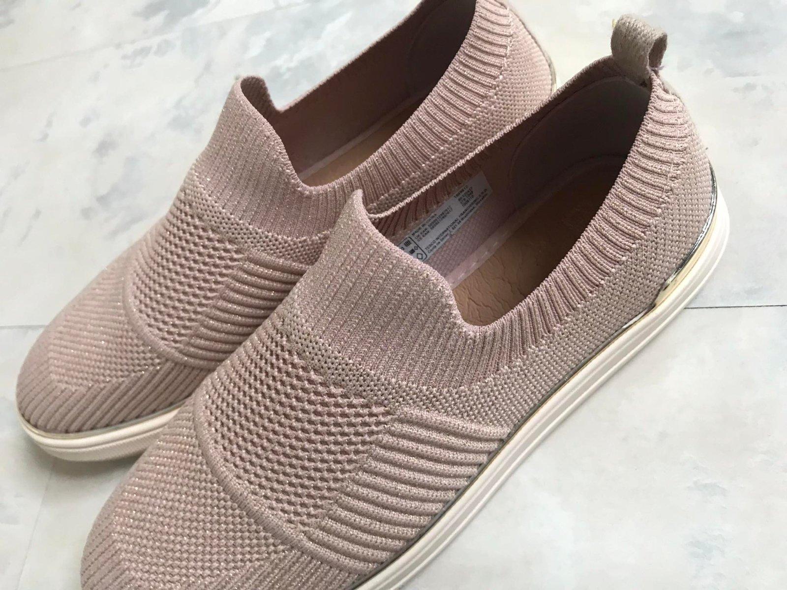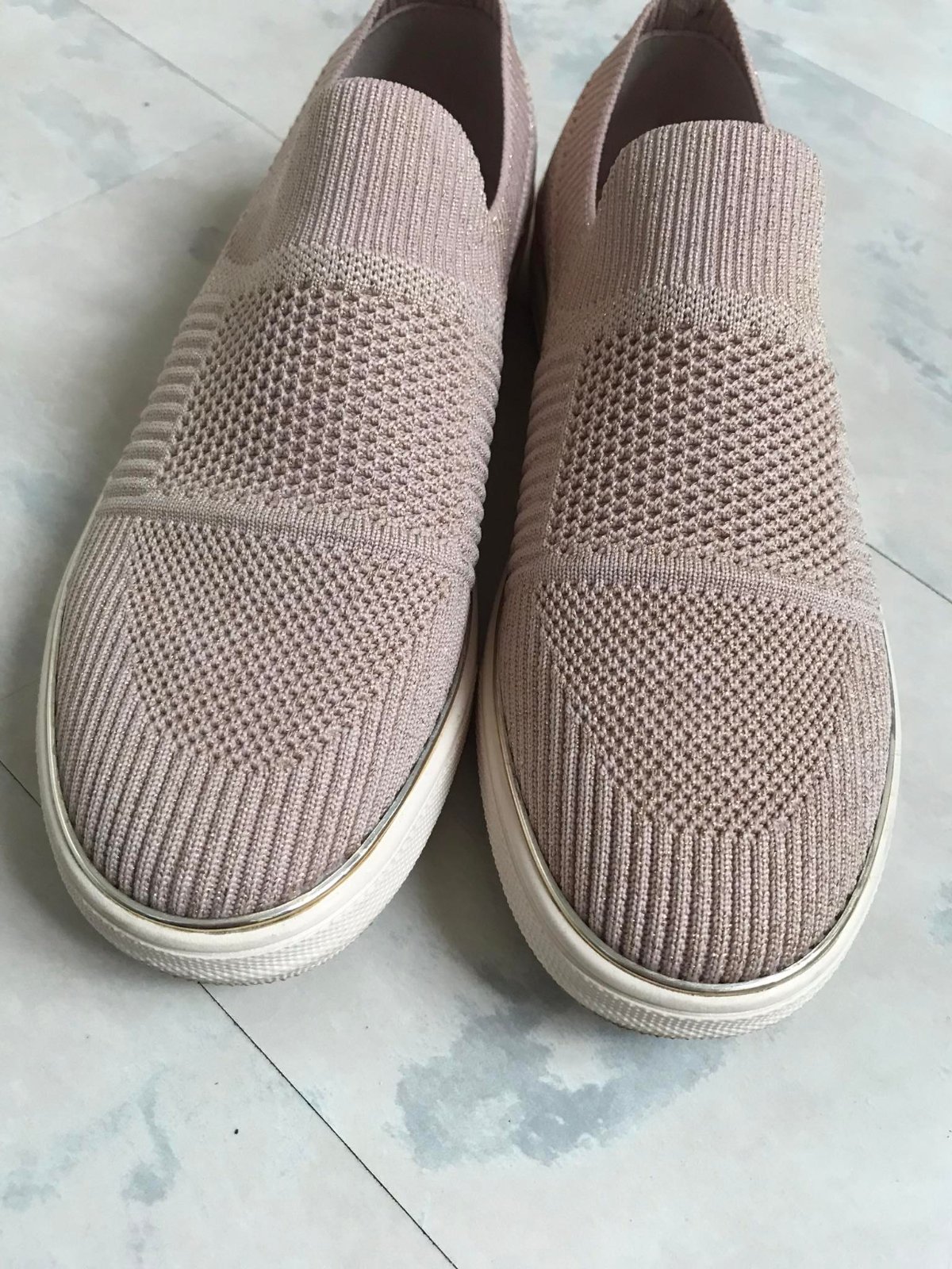 pružné elastické textilné vzdušné tenisky so zaujímavými detailami,raz obuté,jemné drobné trblietky v zlatej farbe,ktoré naoko nie je skoro vidieť,preto som zväčšila fotku