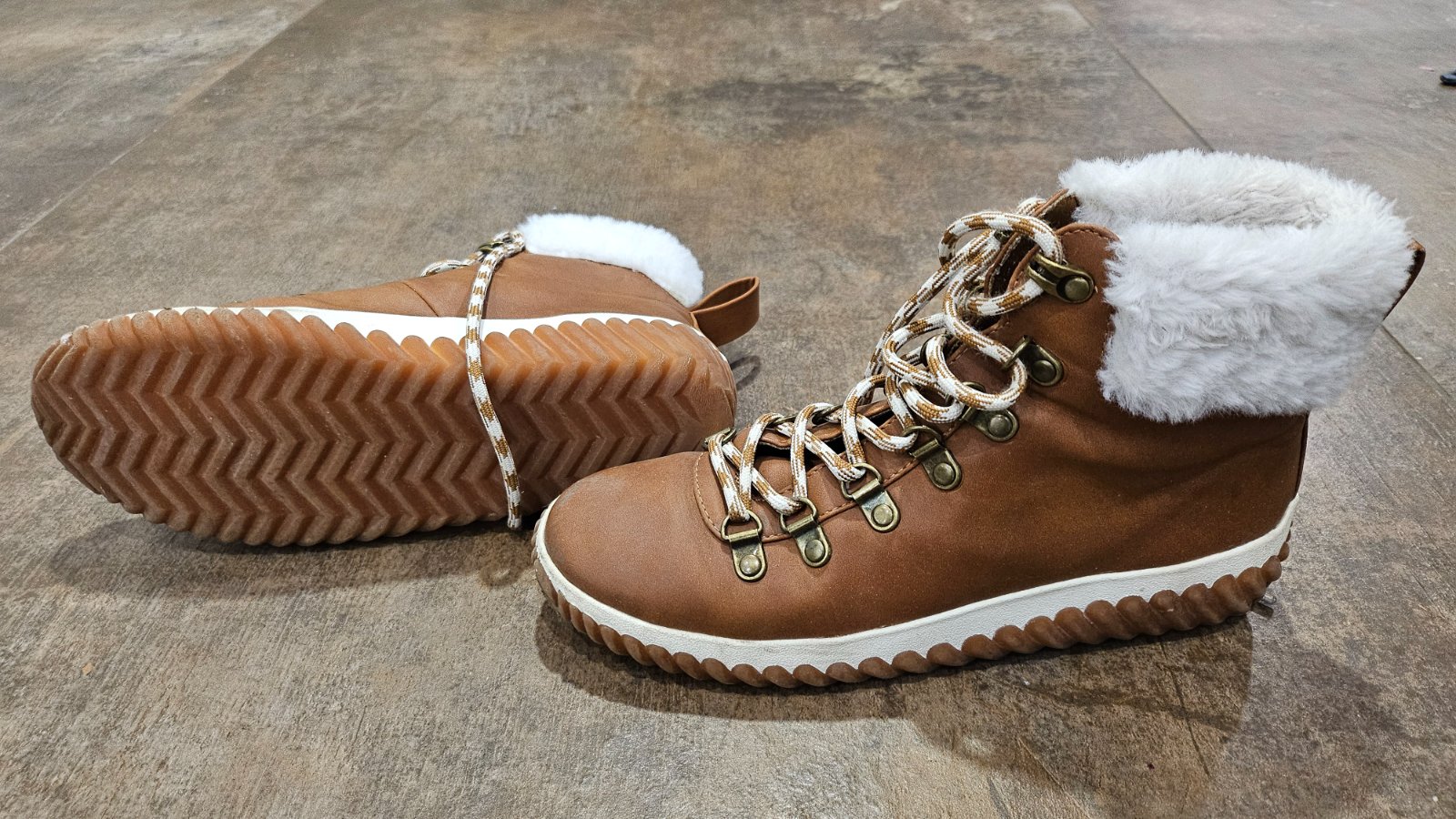 V peknom nosenom stave. Na ľavej nohe už led nefunguje. Topánky sú nepremokavé, lahučké