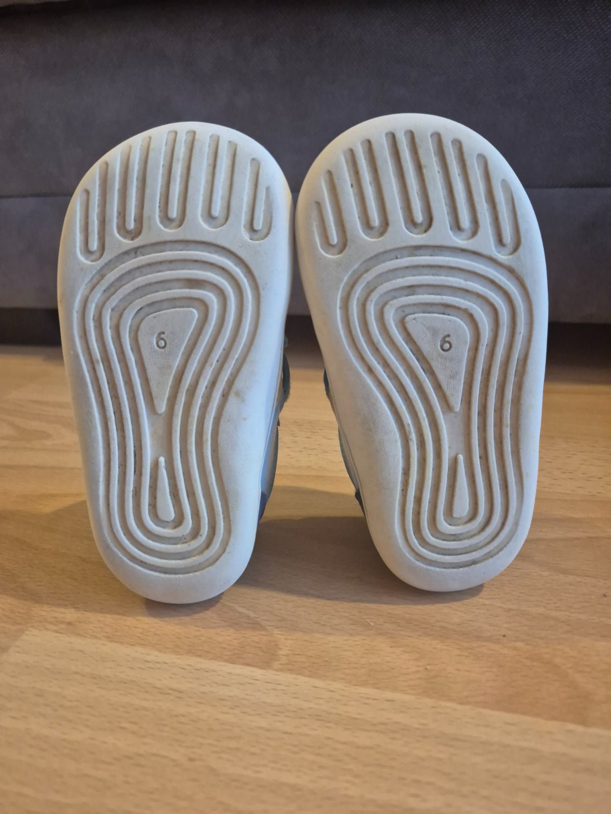 Max dlzka 14,5cm, sirka 6,4cm Na niektorych miestach sa nachadzaju skrabance, vid foto. Vhodne na prve kroky vdaka pruznej podrazke, na normalne az siroke nozky, aj s vyssim priehlavkom. Vyberateln...