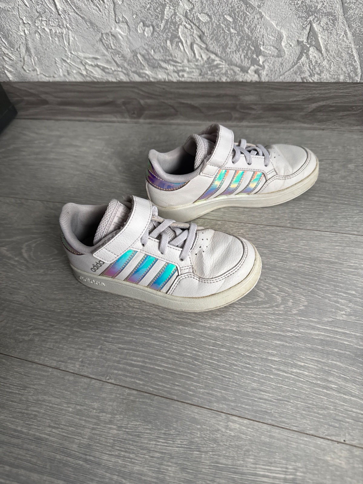 Predám tenisky Adidas Neo Comfort Fit. Celokožené, zvonku biele, vo vnútri ružová. Veľkosť č. 28. Zapínanie na suchý zips. Vpredu a na boku ošúchané, vhodné na donosenie. Kupované v apríli 2016, do...