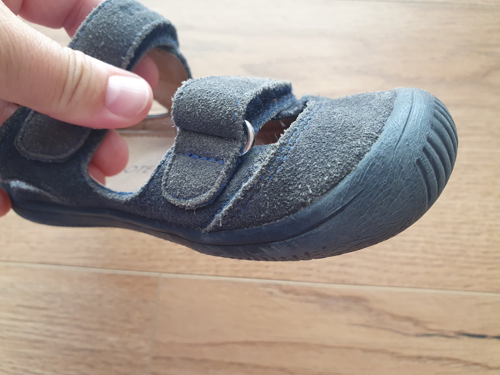 Sandálky nosené, farba čistením vyblednutá. Vnútorná dlzka 17cm. Na dvor určite ešte poslúžia.