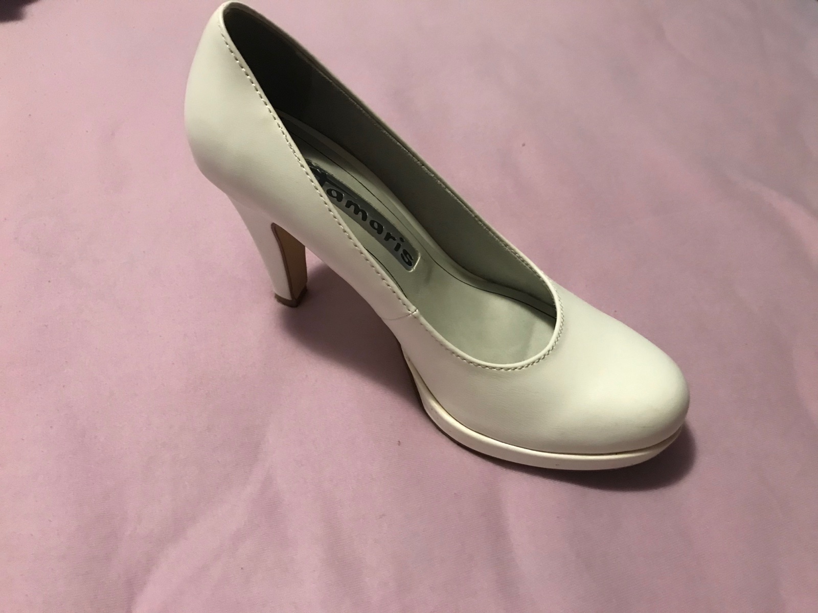 Ponúkam z druhej ruky kúpené, veľmi málo používané, saténové svadobné lodičky. Poprípade na ples, svadbu ci stužkovú. Sú veľmi pohodlné. Farba je skôr smotanová...alebo champagne...vhodné na užšiu ...