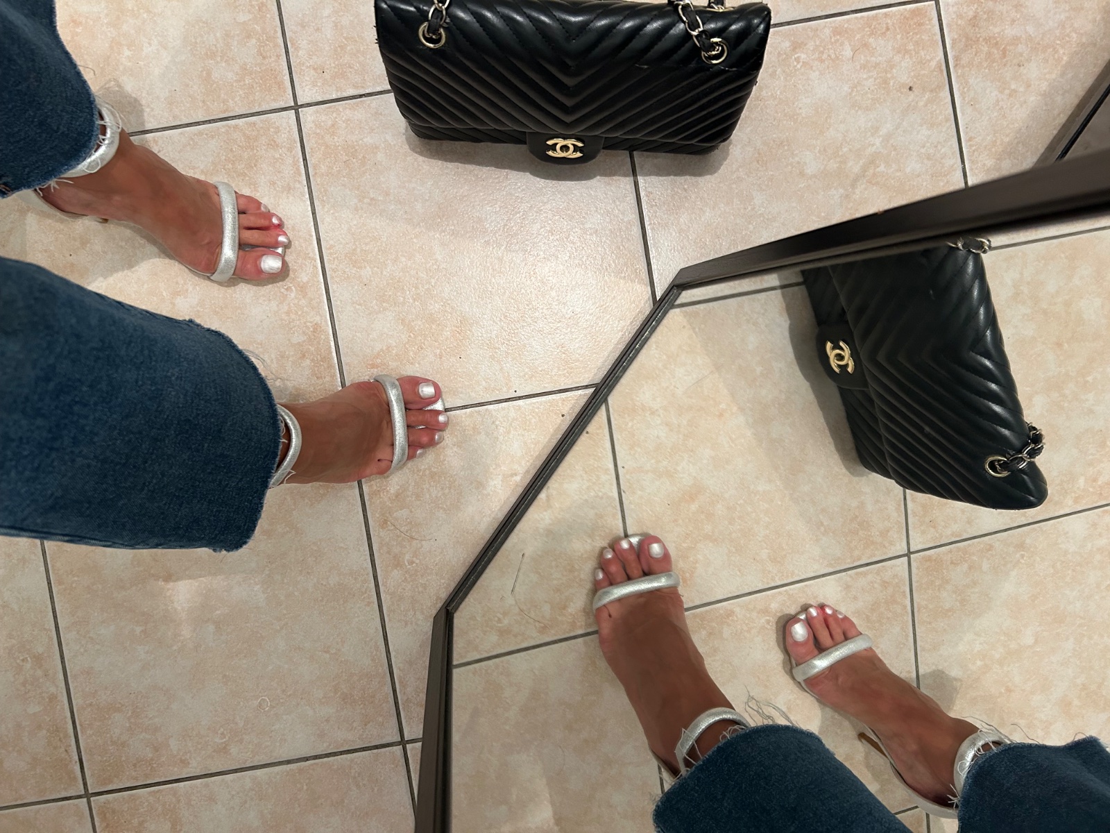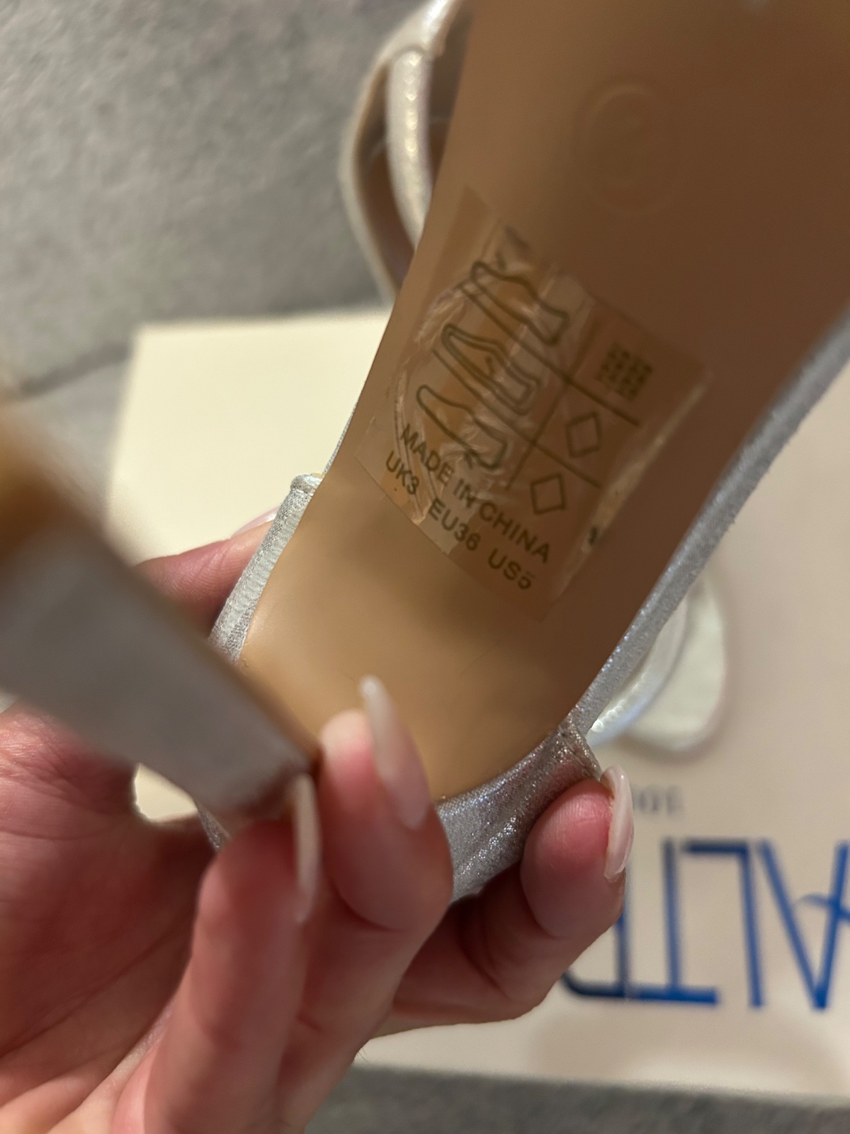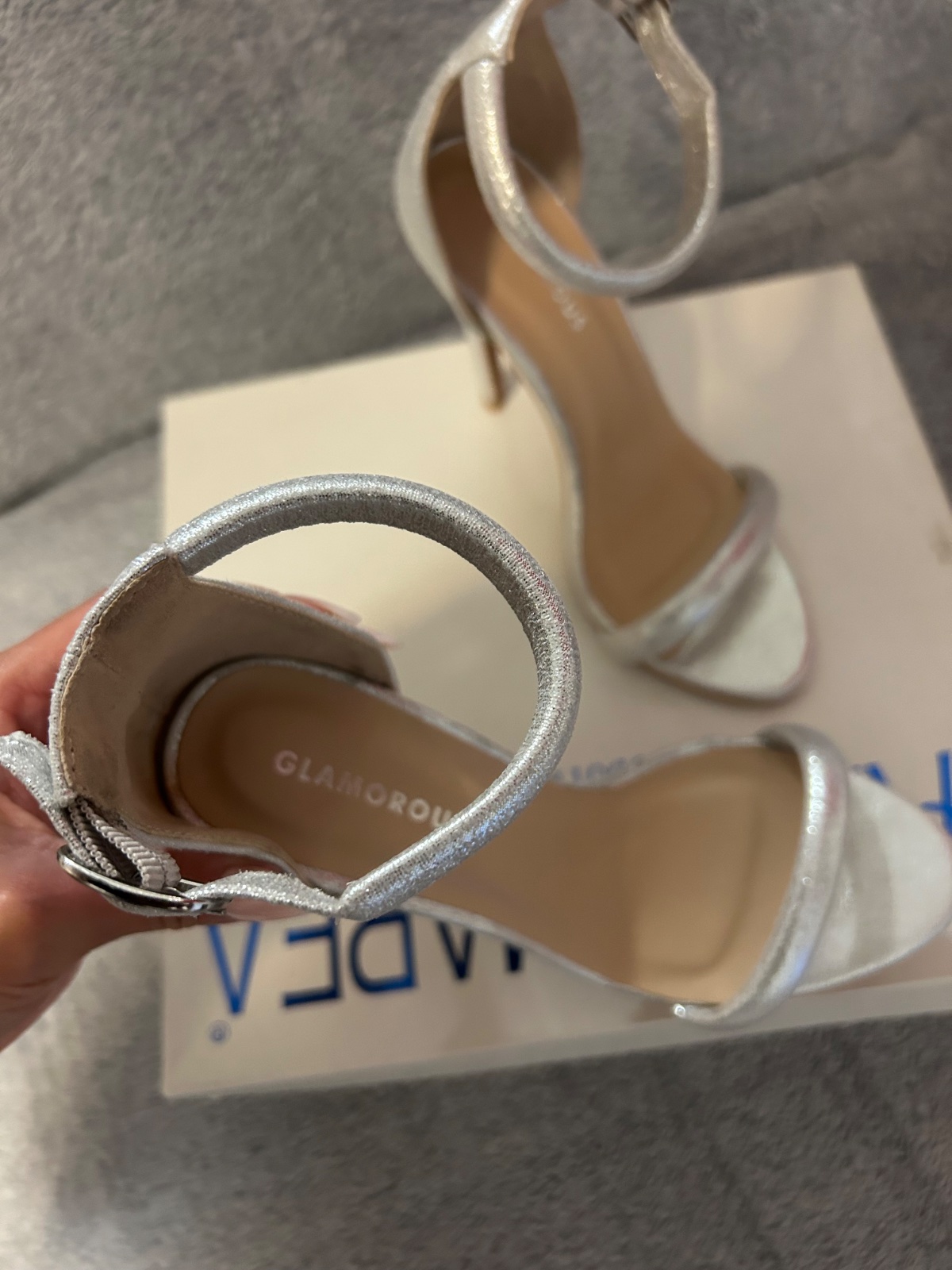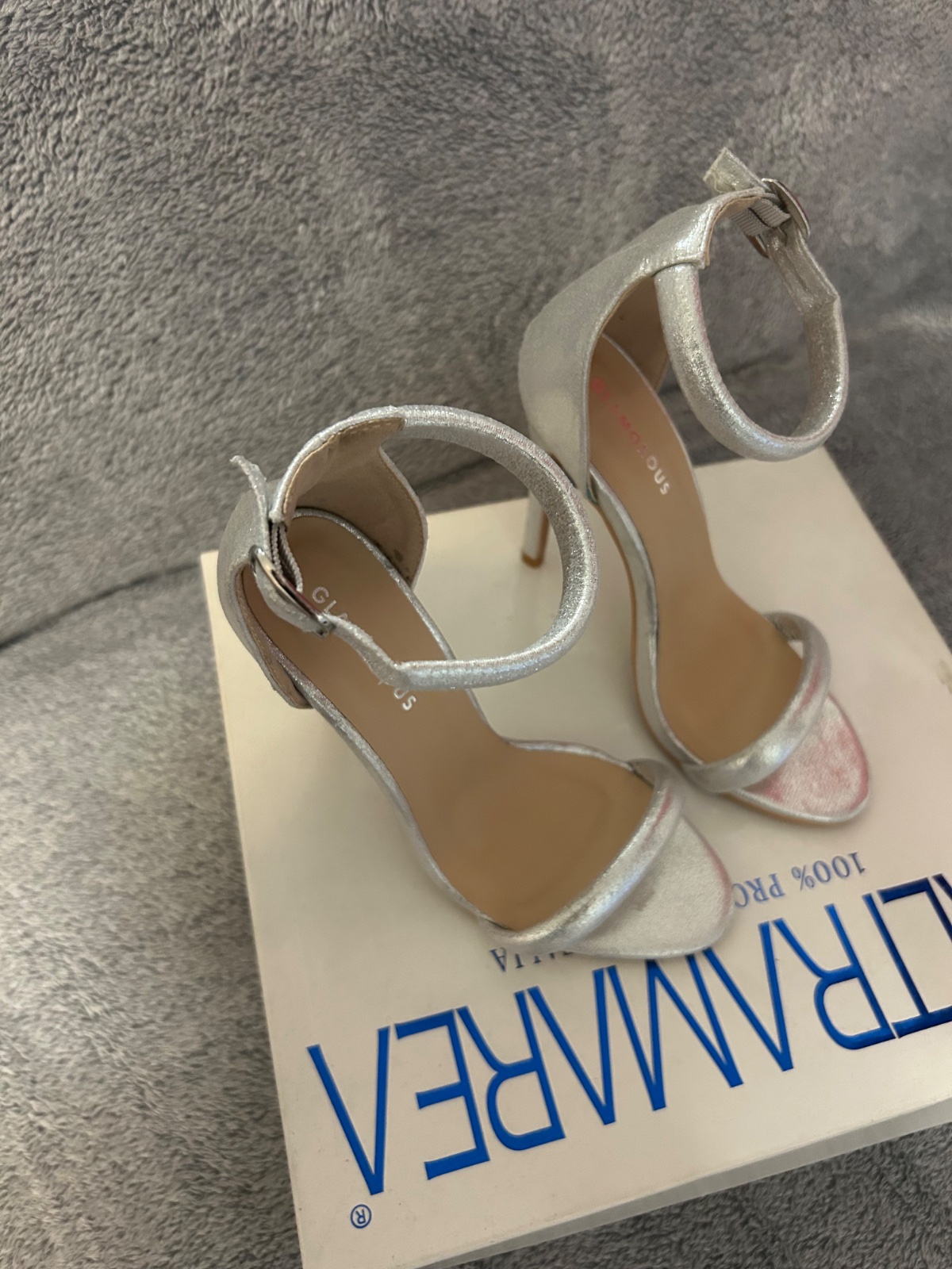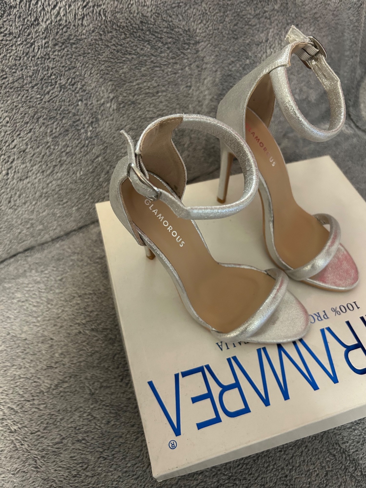 Strieborné sandálky.