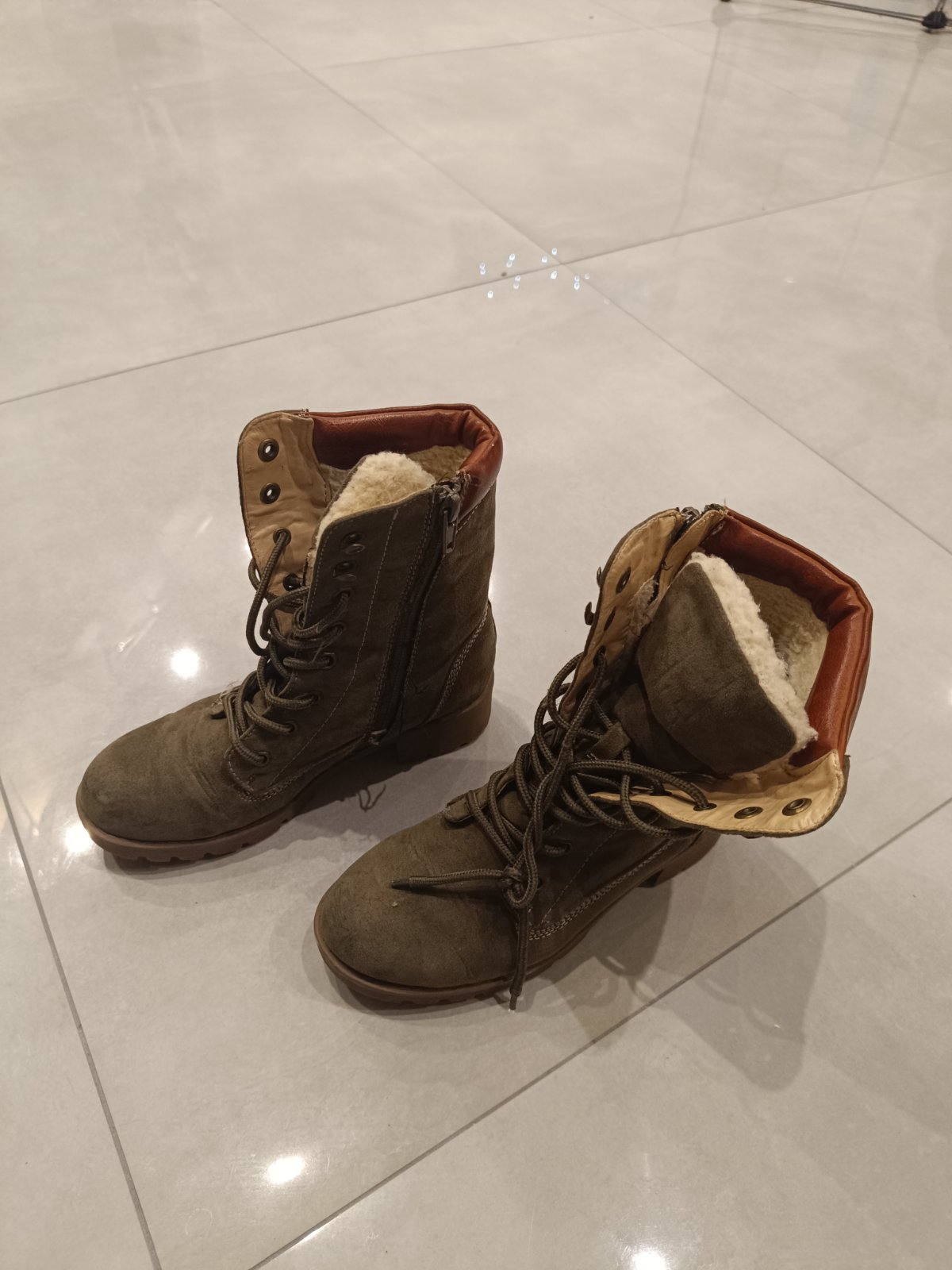 Šikovné teplé čižmy na zips (plne funkčný). Jediné poškodenia sú tie ošúchané predky. Inak veľmi zachovalý stav. Vnútorná dĺžka by mala byť 21 cm-zle sa mi to meria.