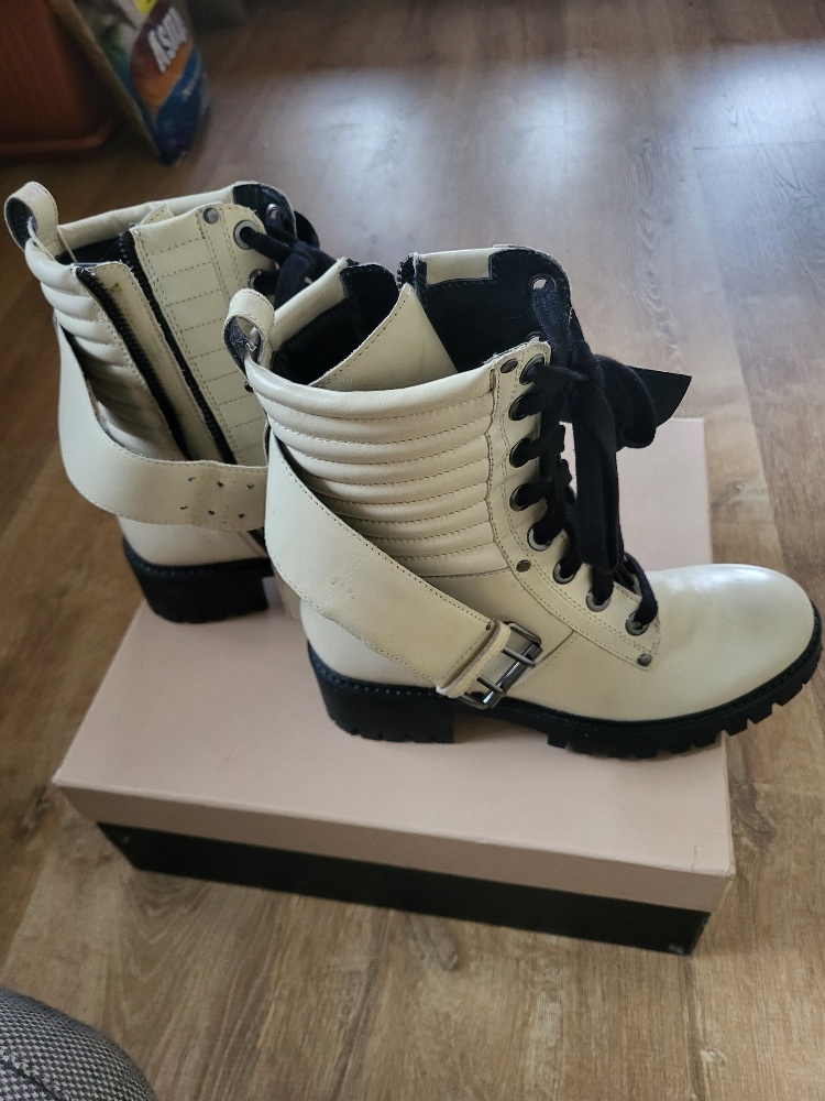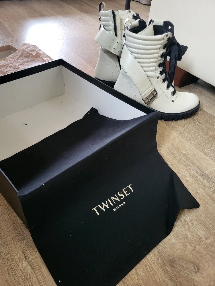 Predám tieto kraaasne poltopánky talianskej značky Twinset. Topánky nie sú zateplené, vhodné do chladnejšej jari/jesene, aj miernej zimy. Sú štýlové, krásne ukážu na nohe. Malá chybička v podobe šuchnutého boku je vidieť hneď na prvej fotke, preto tá mimoriadne nízka cena. To však vôbec nekazí zážitok z používania. Topánky boli nosené minimálne, sú ako nové.