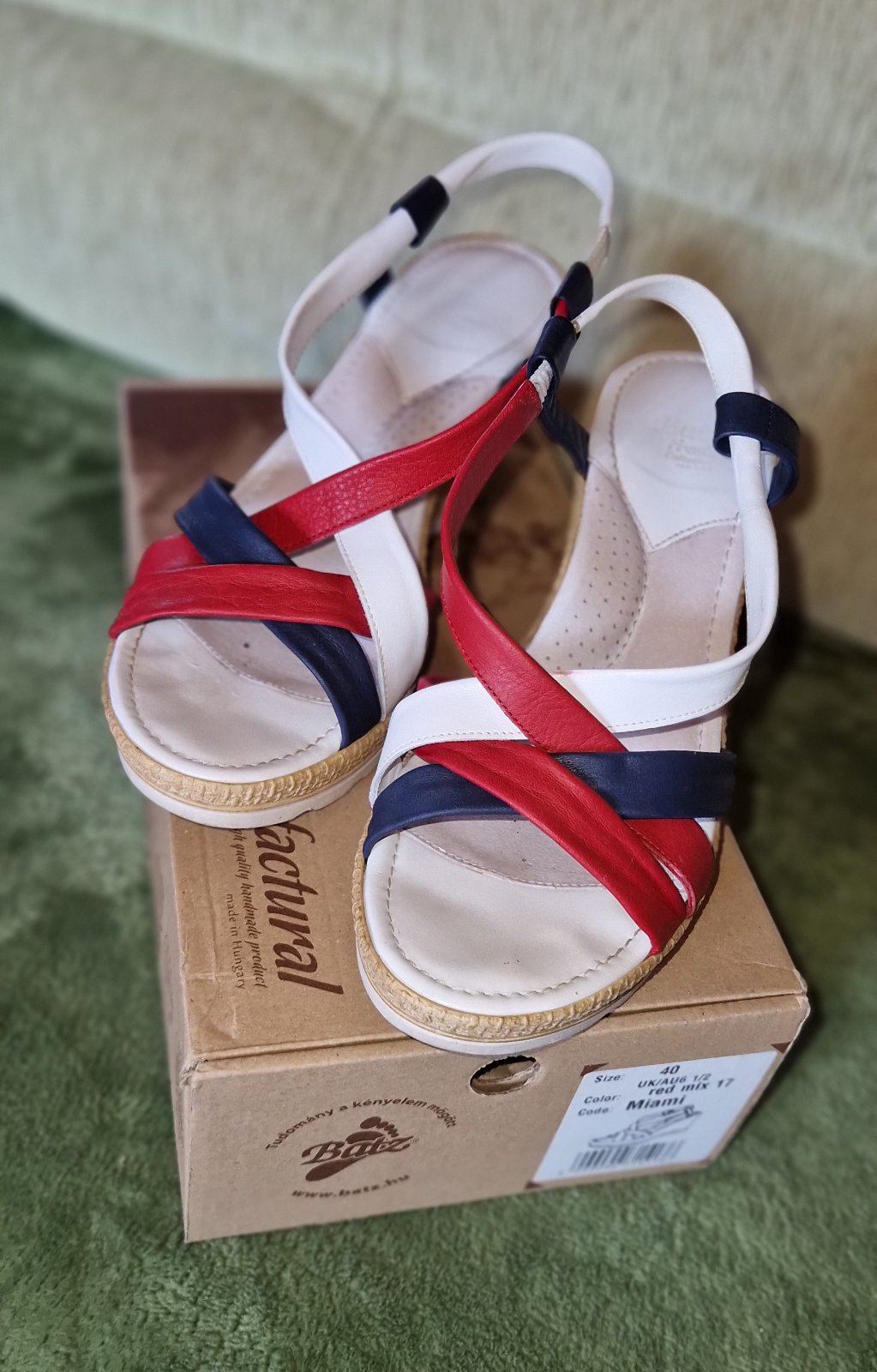Minimálne nosené topánky. Veľkosť 40. Podpätok je celý drevený. Nezdá sa mi, že by mali nejakú chybu. Malé známky nosenia na nich je vidieť.