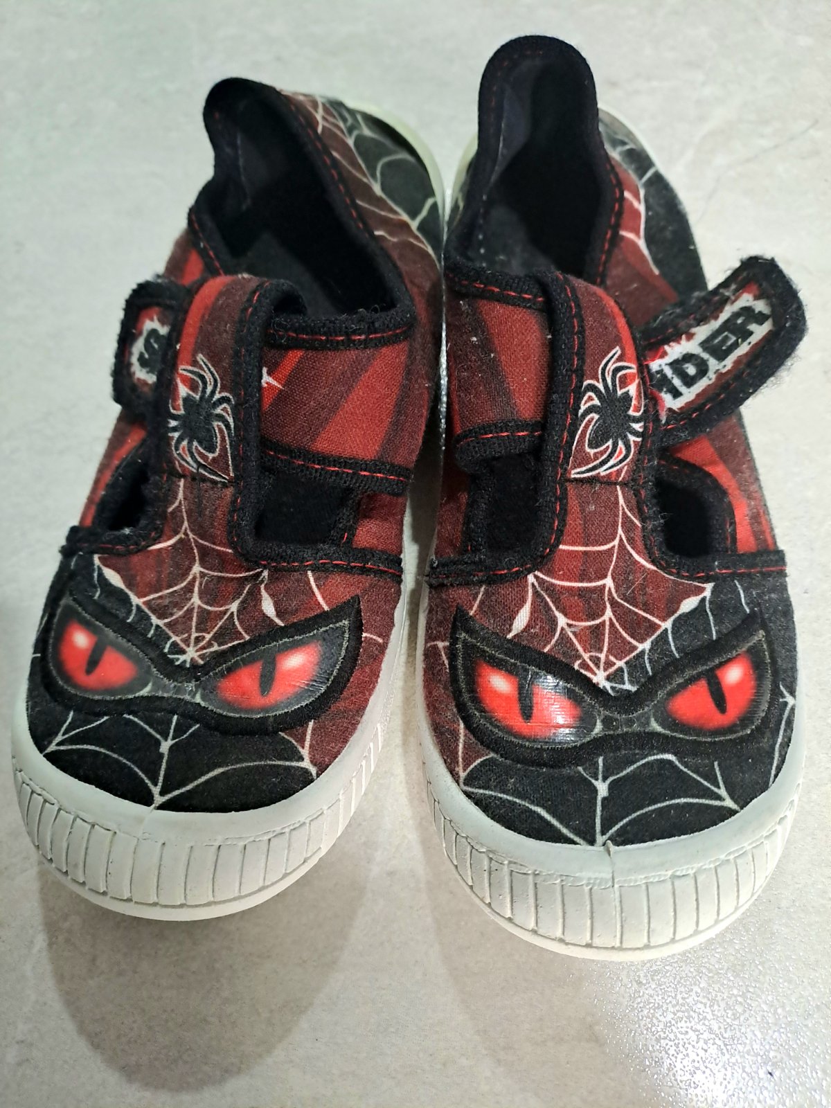 Kvalitné plátenky, vhodné ako prezúvky. Majú pevnú, perforovanú podrážku. Nosené, ale neznosené, neokopané. Zapínanie na suchý zips. Veľ. 34