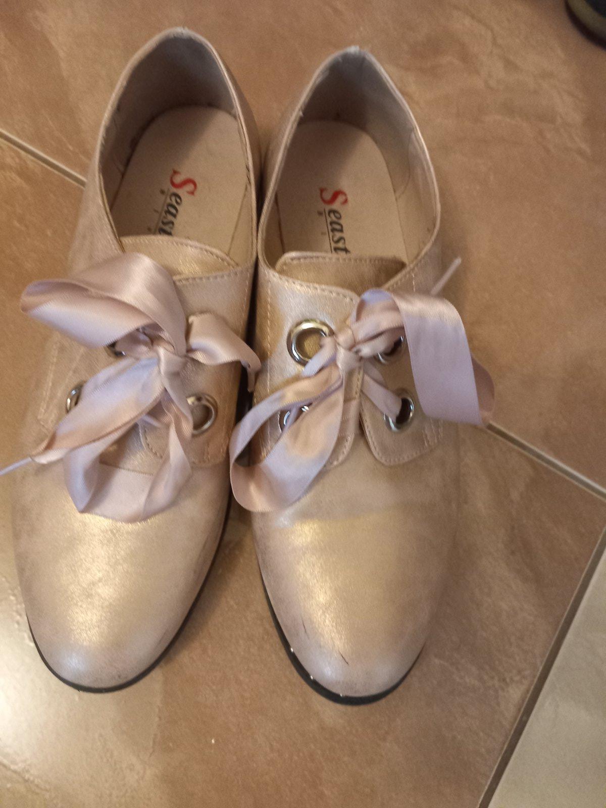 Zachovalé,nepoškodené,obuté raz na promócie.Hrubý podpätok,povrch ako brusena koža. Cena + pošta