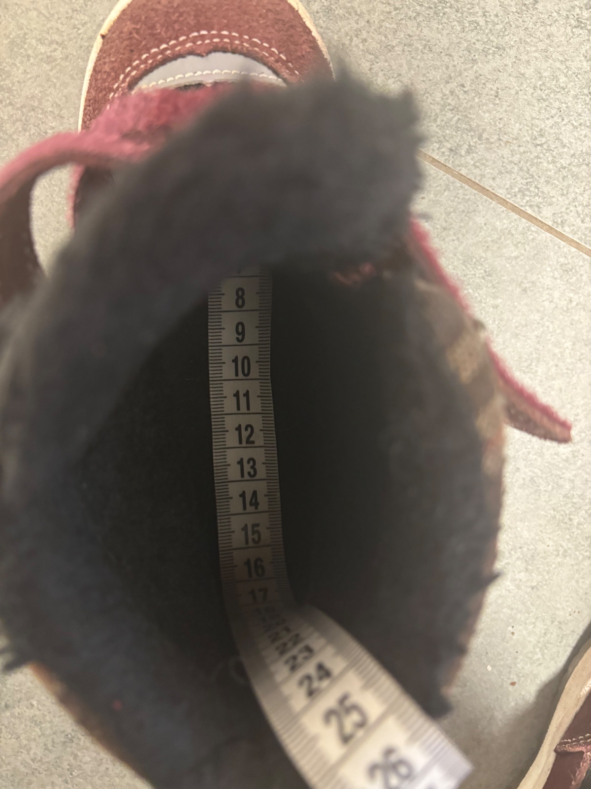 Krasne zimne topanky vo vybornom stave! Farba bordova. Vnutorna dlzka 17cm. Jemnucke suchnutie na spickach, vid foto.