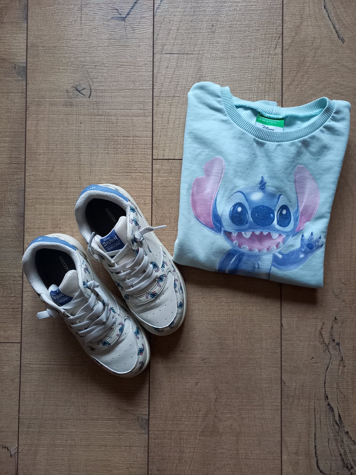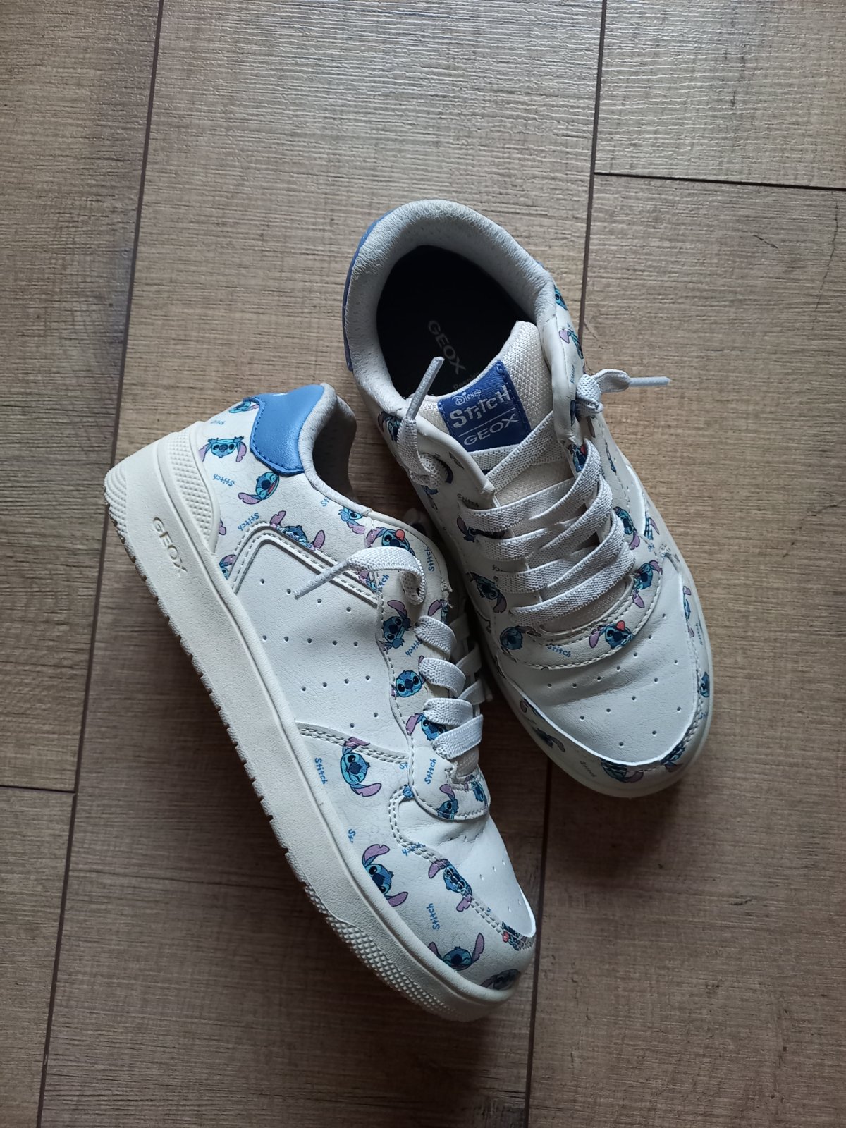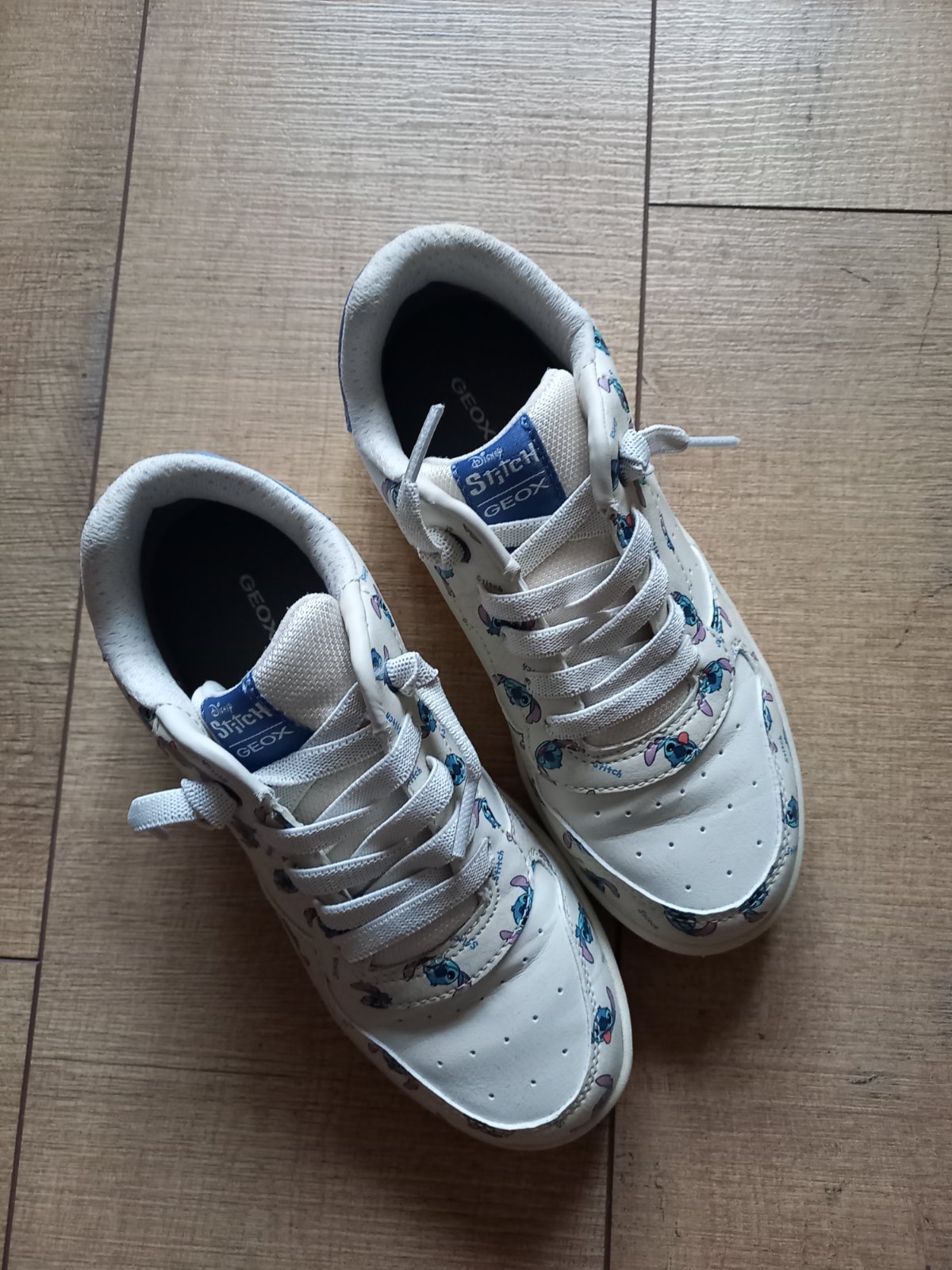 Nenosene tenisky zn. Geox, velk. 34. S motivom Stitch. Snurky elasticke, bez zavazovanie, ale daju sa nahradit klasickymi. V ponuke mam aj mikinu Stitch, velk. 9-10 rokov, zn. Benetton.