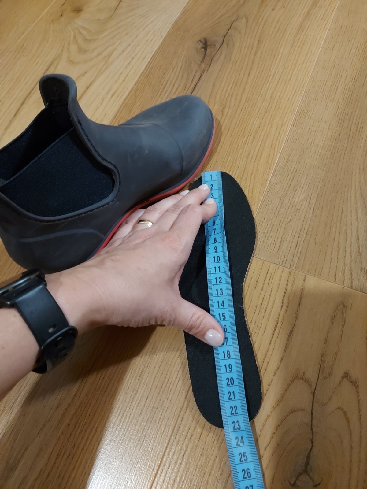 Málo nosené gumáky. Majú iba malé škrabance z vnútornej strany lýtok- viď foto. Inak sú stále vodeodolné, nepoškodené. Výška sáry od päty po vrch:33cm. Vnútorná dĺžka meraná podľa vložky: 22cm (viď...