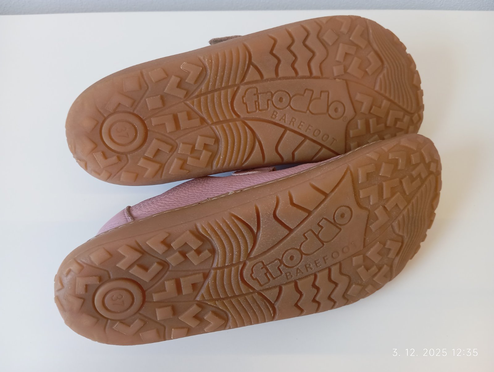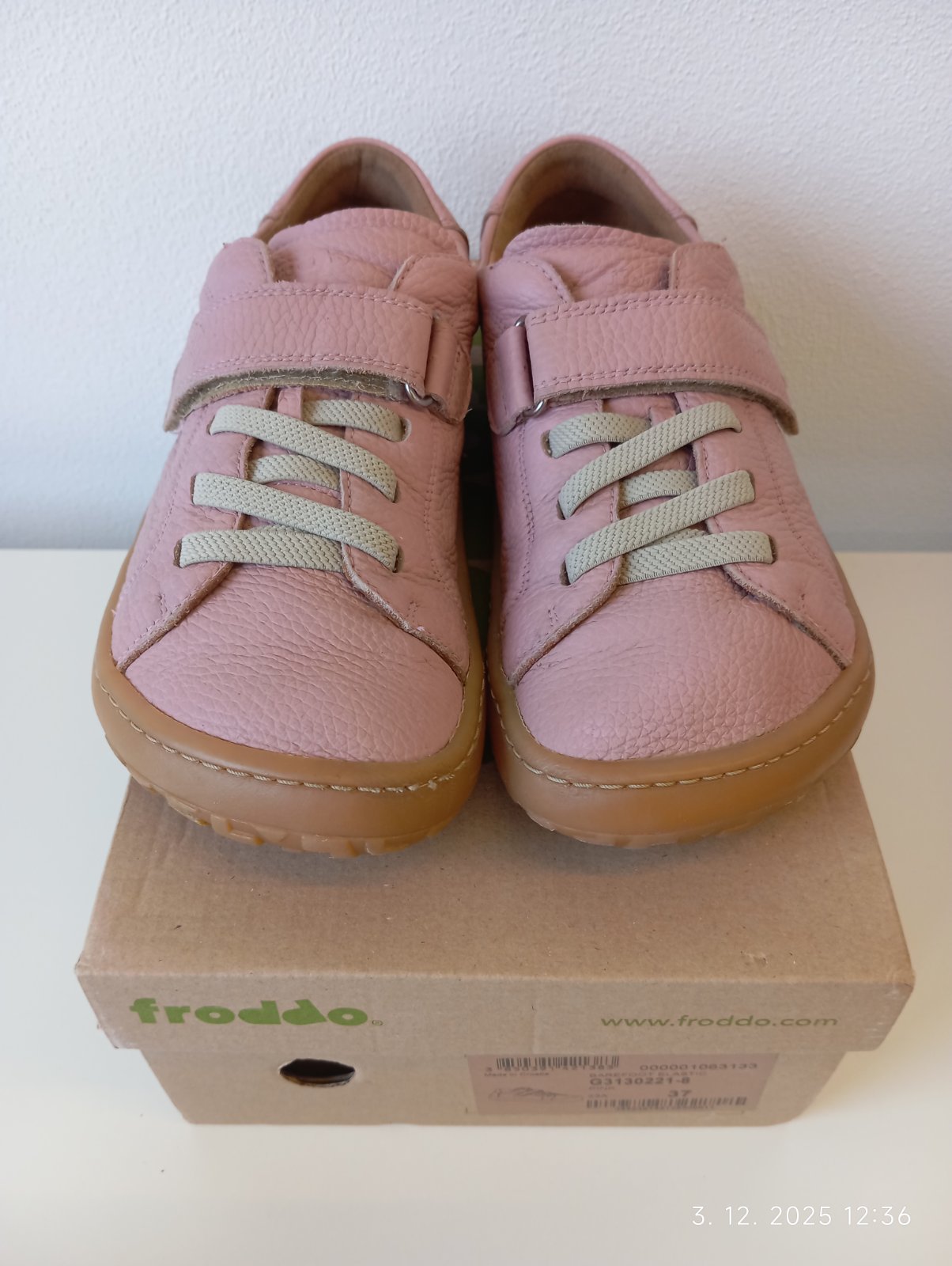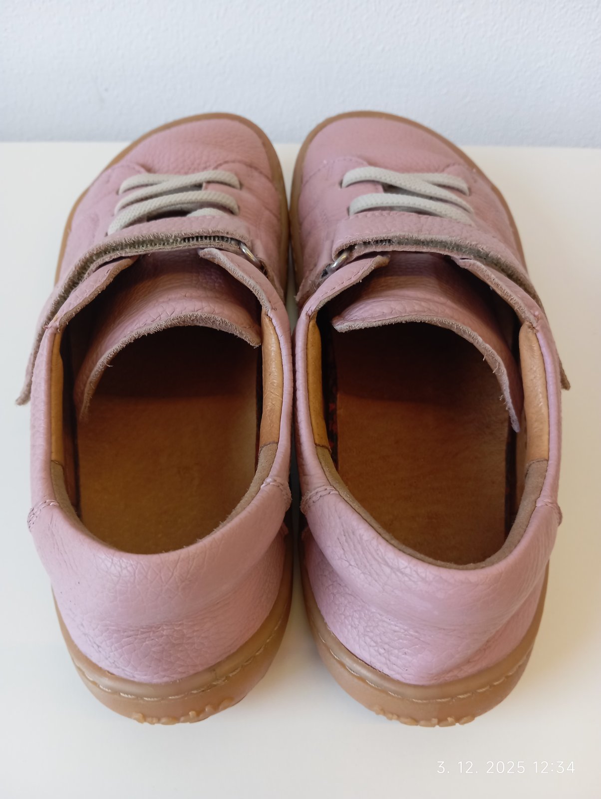 Froddo barefoot kožené tenisky nosené na striedačku s inými mojou dcérkou. Sú vo veľmi dobrom stave. Štepovanie na pravej topánke mierne šuchnuté. Sú vyrajbané, vydezinfikované sprejom na obuv, ošetrené balzámom na kožu a pripravené k noseniu.