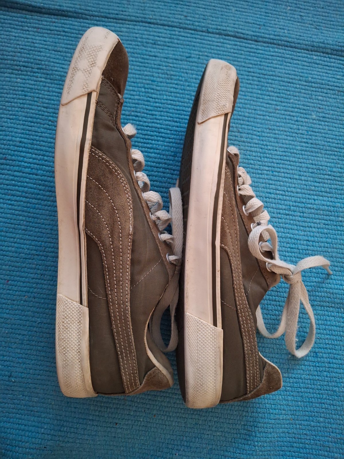 Nosené ale aj napriek tomu sú stále nositeľné. Vnútro nepotrhané.Každá obuv v mojom bazariku je dezinfikovaná Kvartom a a ak si vyžaduje tak aj impregnovaná impregnačným sprejom.