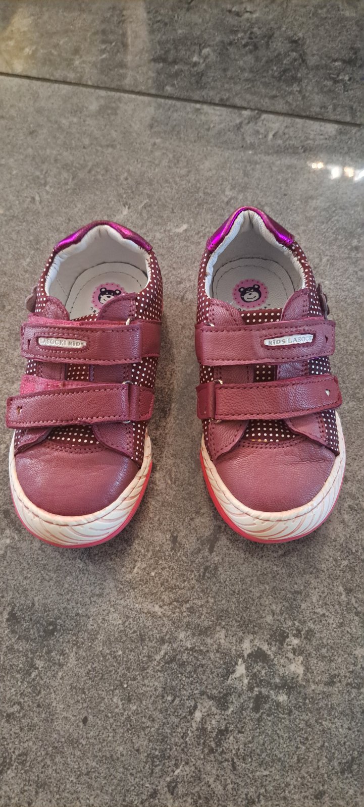 Prechodné topánky, zvnútra teplejšie, nosené 1 sezónu aj to nie celú. Jedna špička je trošku ošúchaná -viď foto. Stav zodpovedá fotkám. Zachovalý stav. Pôvodná cena vyššia. My sme nosili v 3rokoch