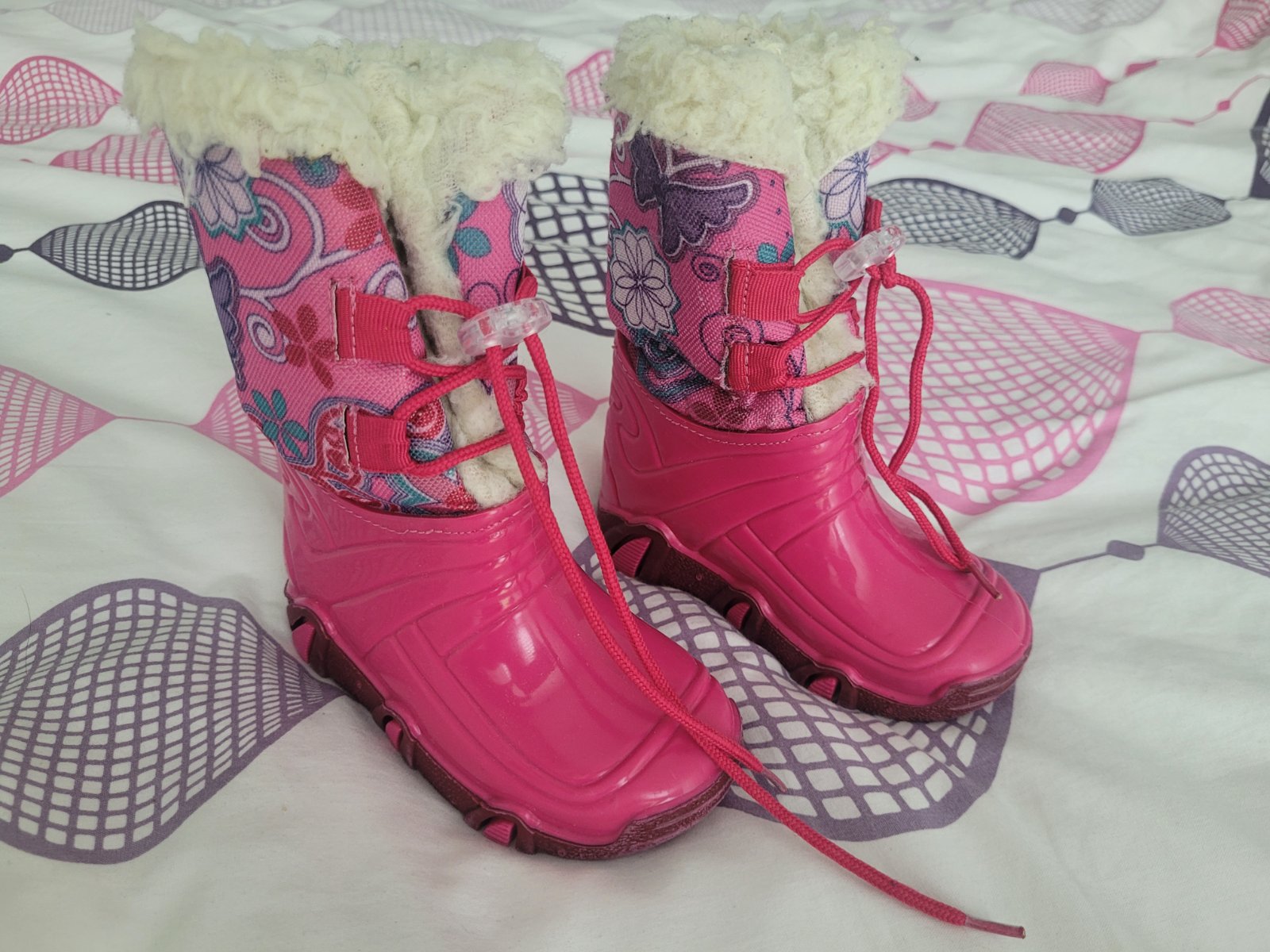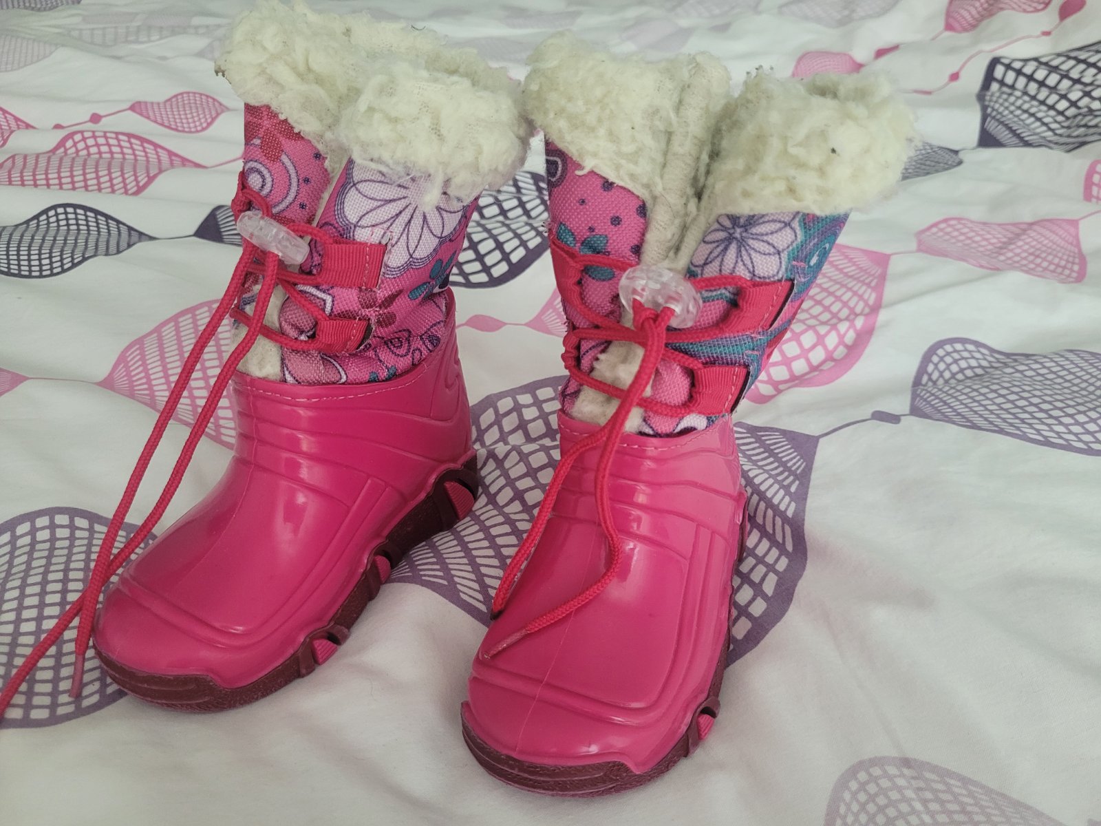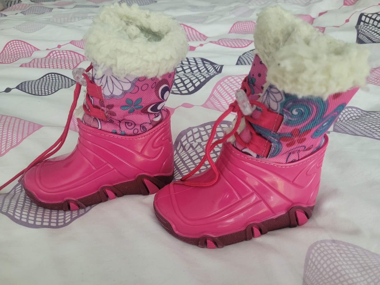 Teplé zimné nepremokavé čižmičky v peknom nosenom stave (jediná chybička-na jednej šnúrke chýba "plastové ukončenie").
