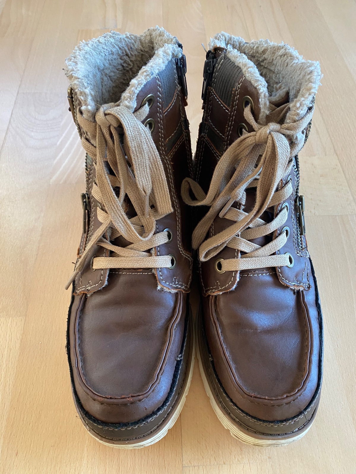 Zateplené topánky, na boku šuchnuté, mierne aj vredu. Málo nosené. Vnútorná dĺžka 25,5 cm.
