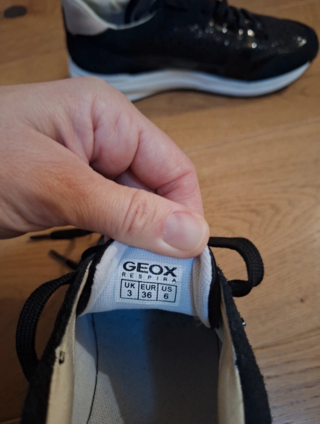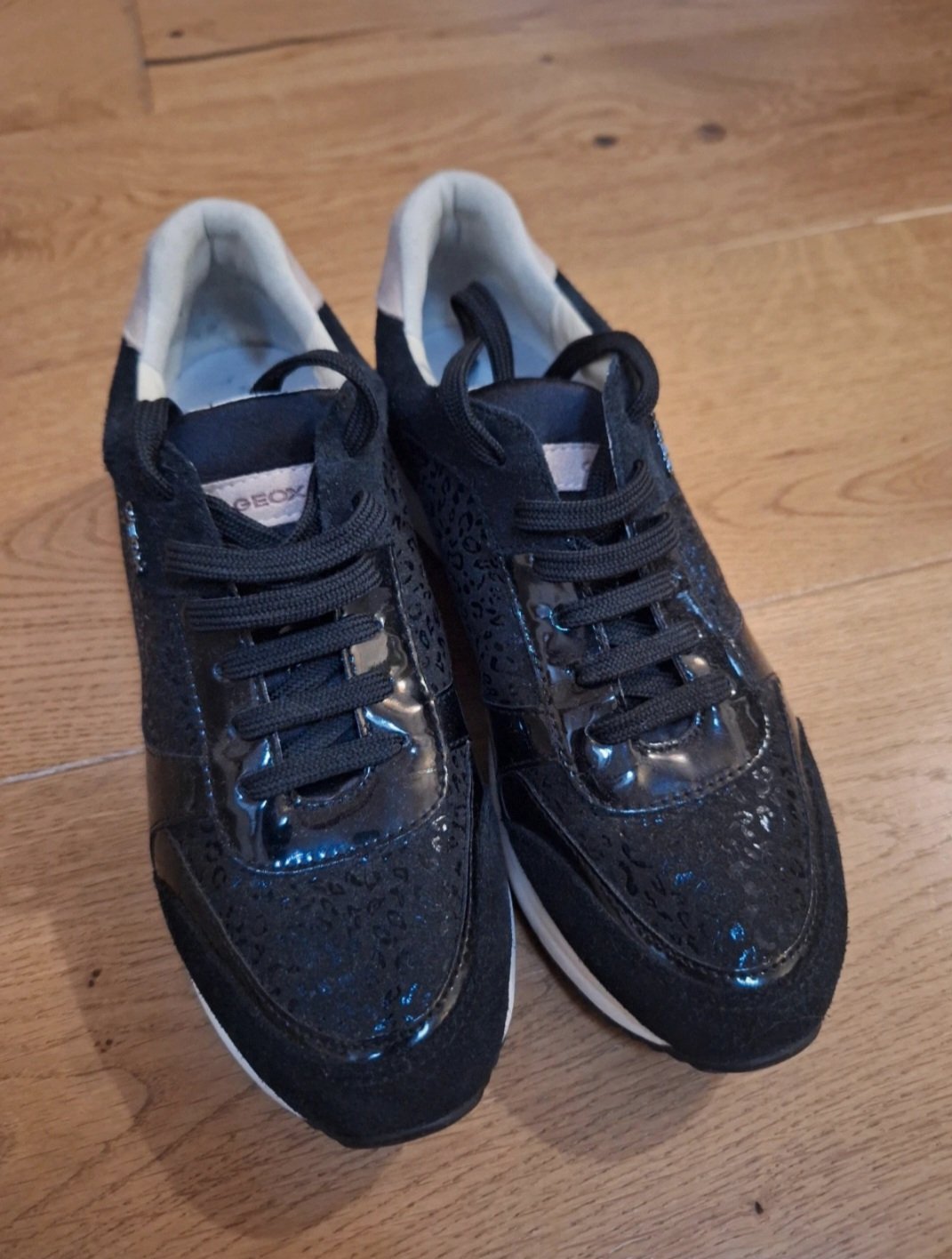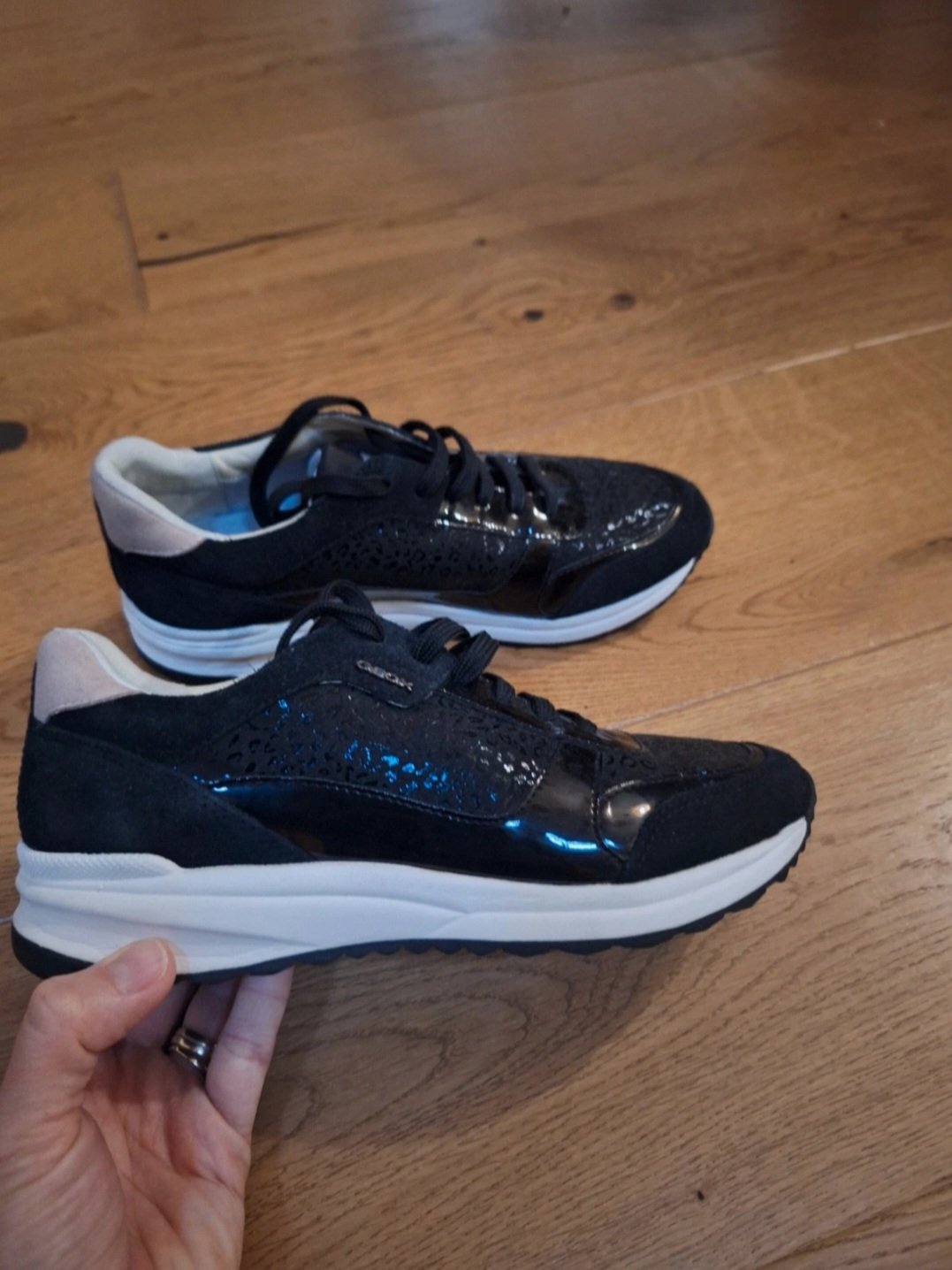Tenisky v peknom stave po mojej dcére, kombinácia čiernej s lesklou látkou, maju zvnútra jemne oskretie(vid foto),nic hrozne.