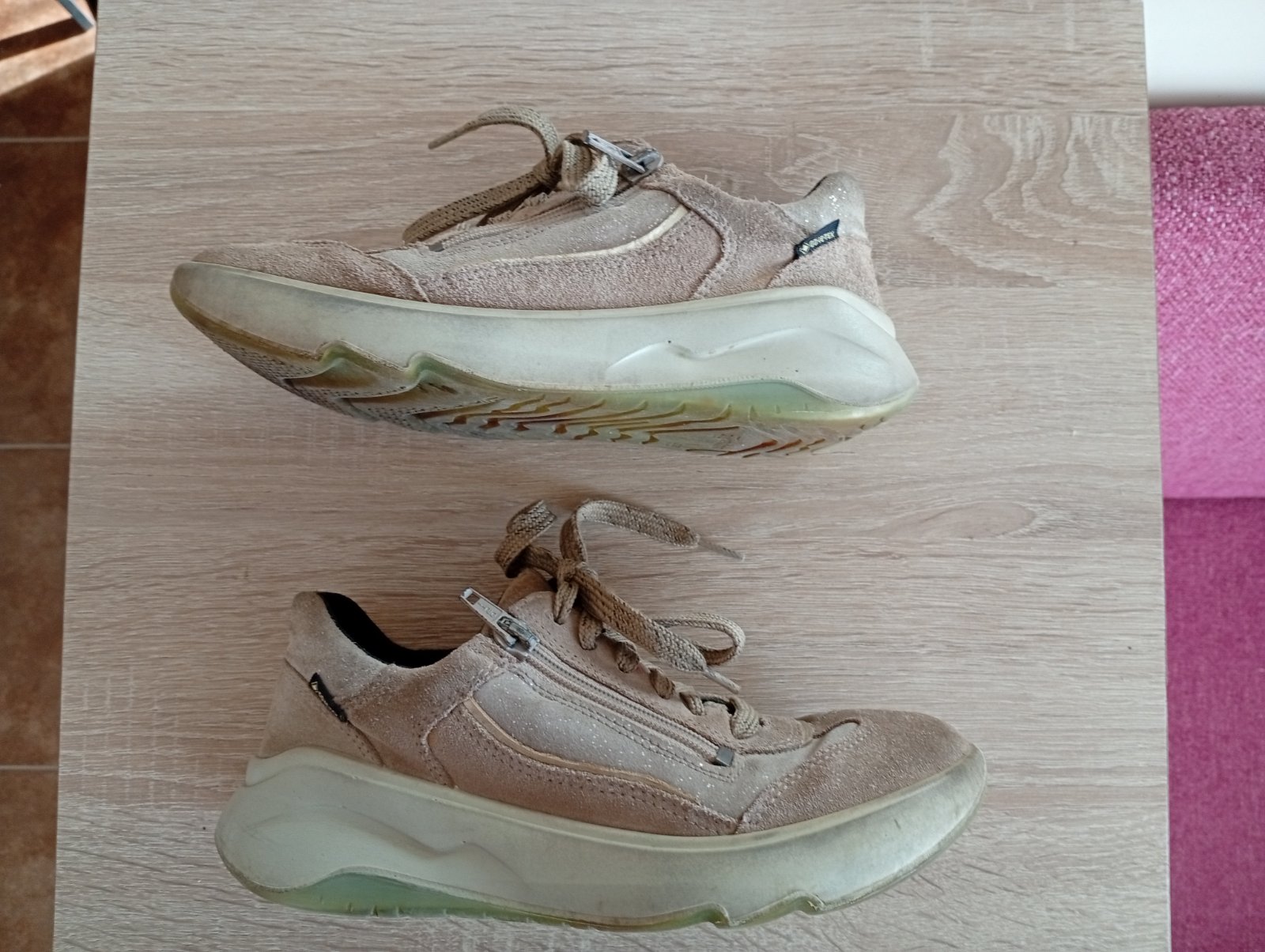 Bez poskodeni, trblietky a farba nosenim a cistenim osuchane, ziadne diery a zakopnutia. Kupena ina maksia vlozka.