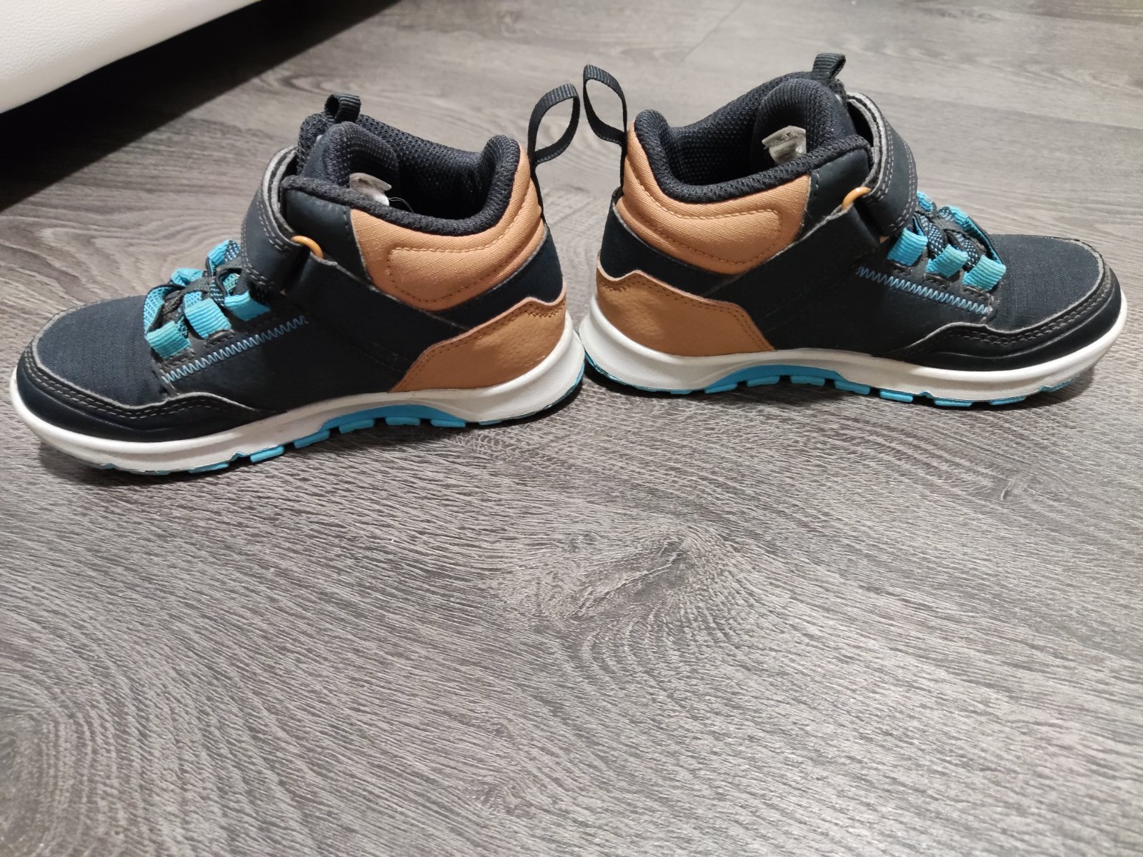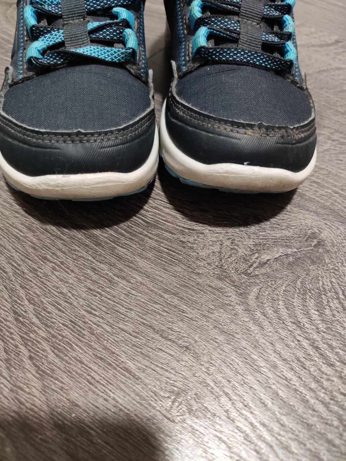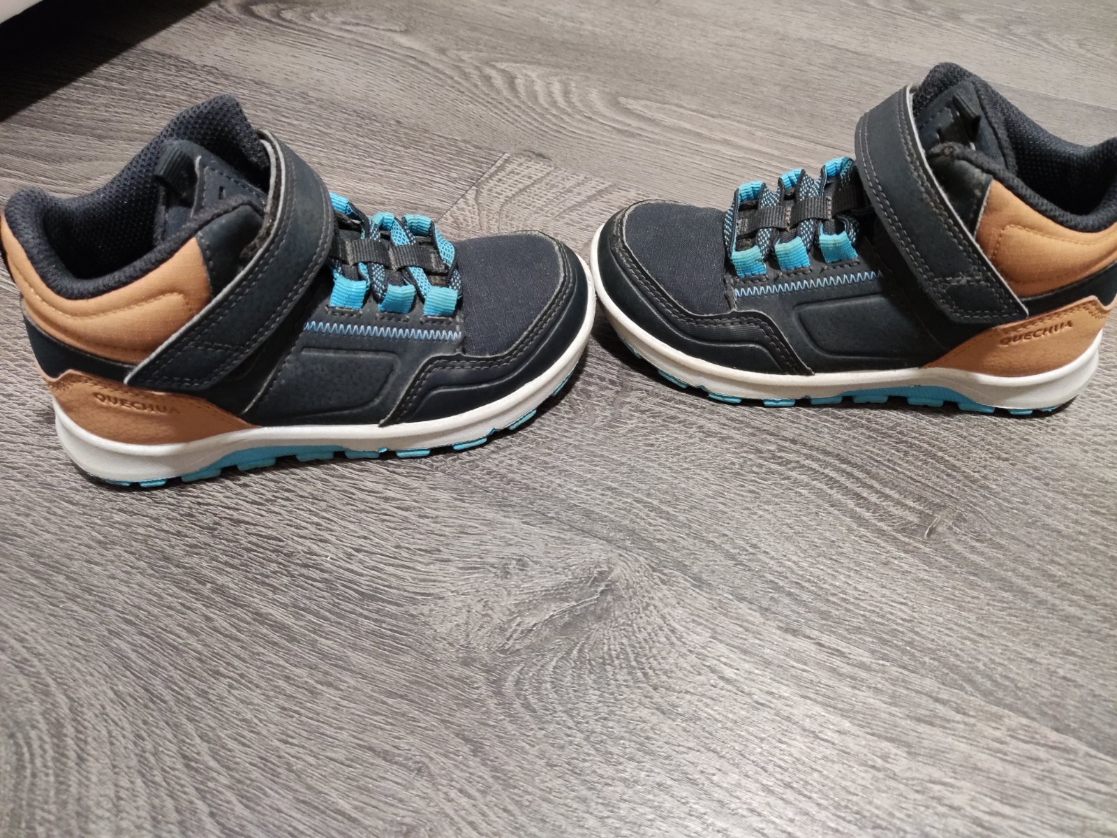 Turisticke topanky zn. Quechua, velkost 28, dlzka stielky na foto. Snurky gumickove, pracka na suchy zips, drzi. Na jednej zosuchane nite na sve, nerozchadza sa a okopana spicka. Este posluzia.