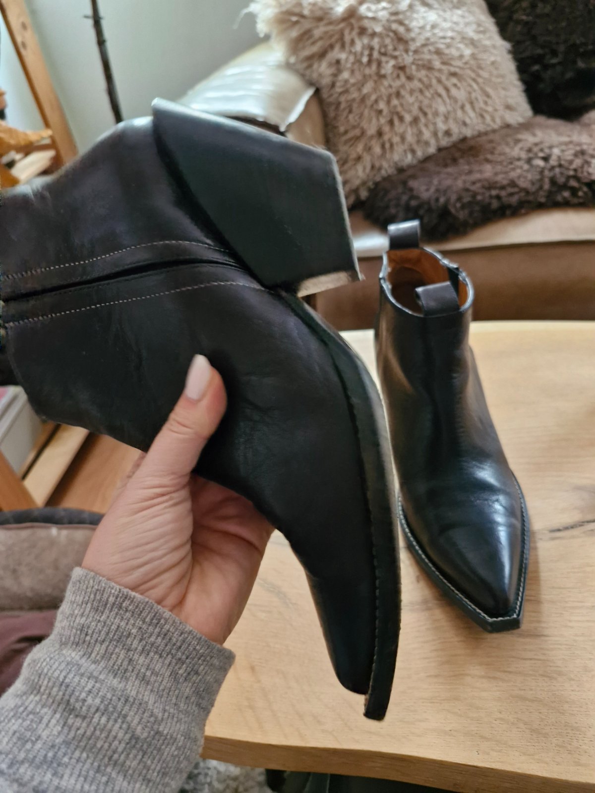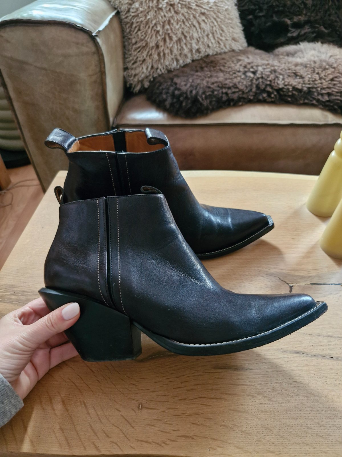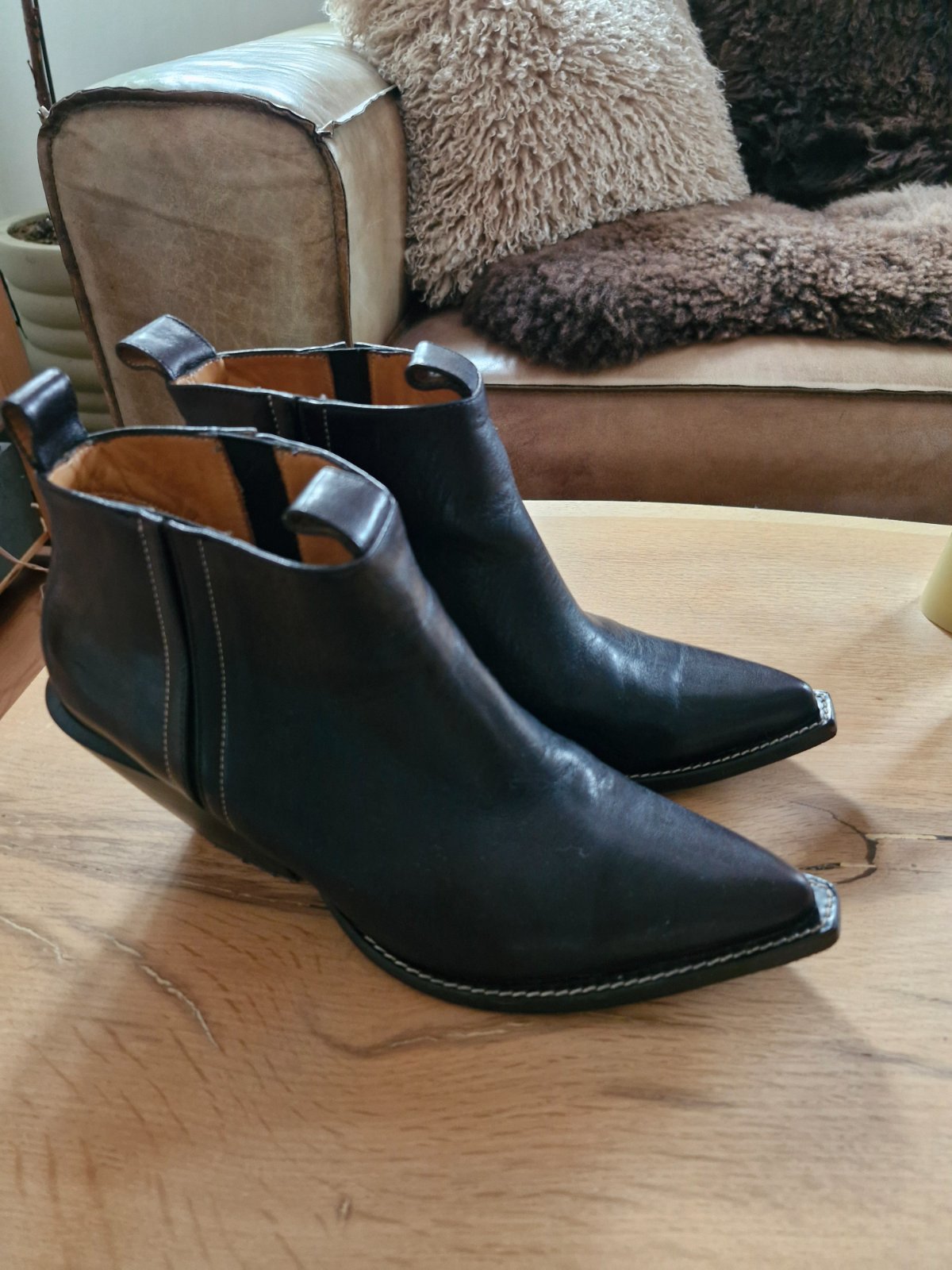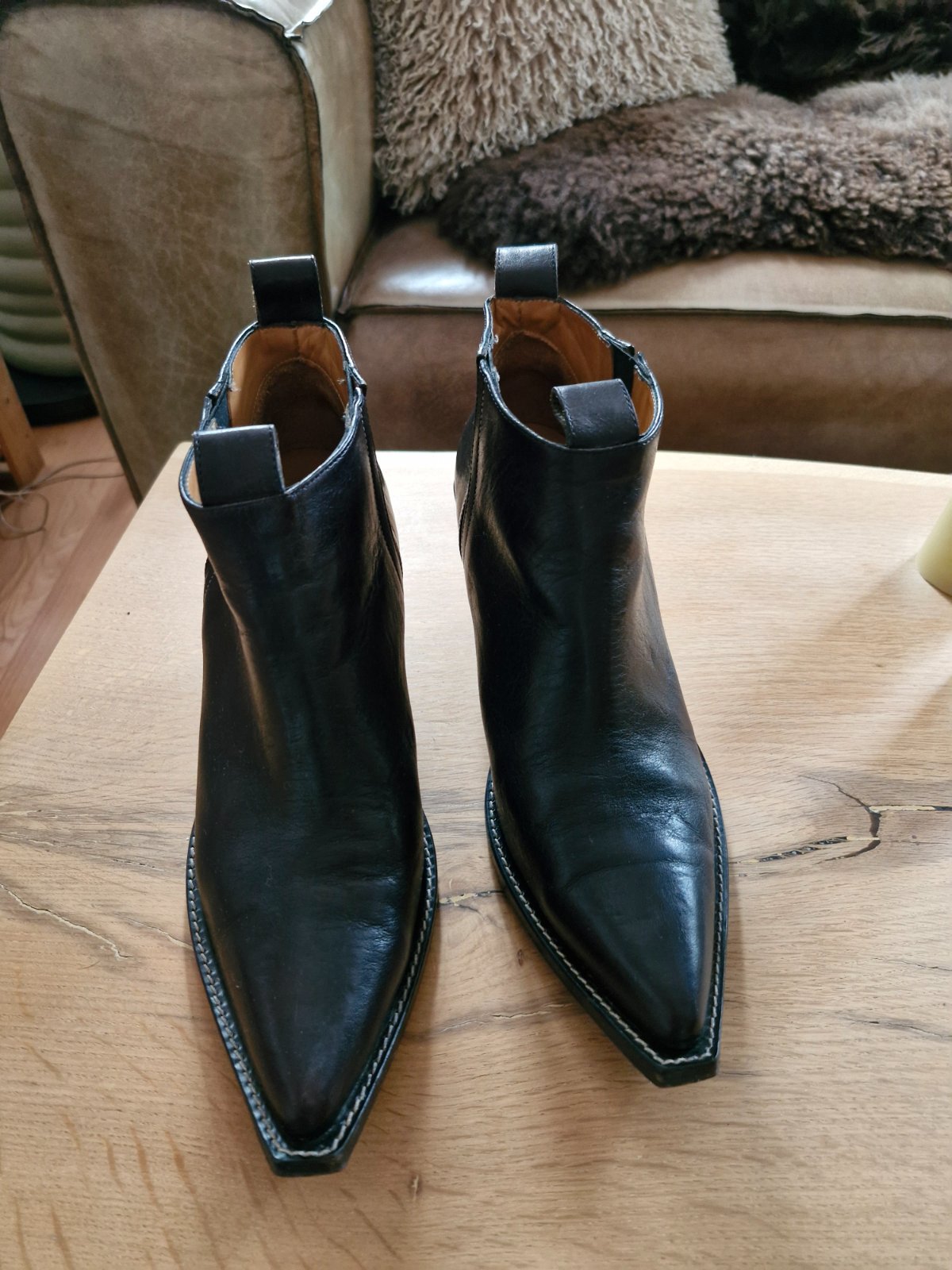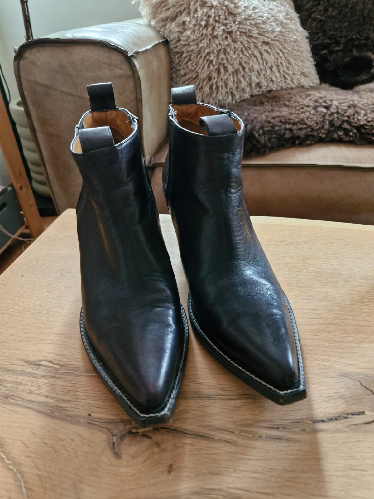 Nosene bez vyraznych poskodeni, kupovane v Portugalsku, celokozene, sem- tam nejaky osuch na opatku. Farba ciernohneda