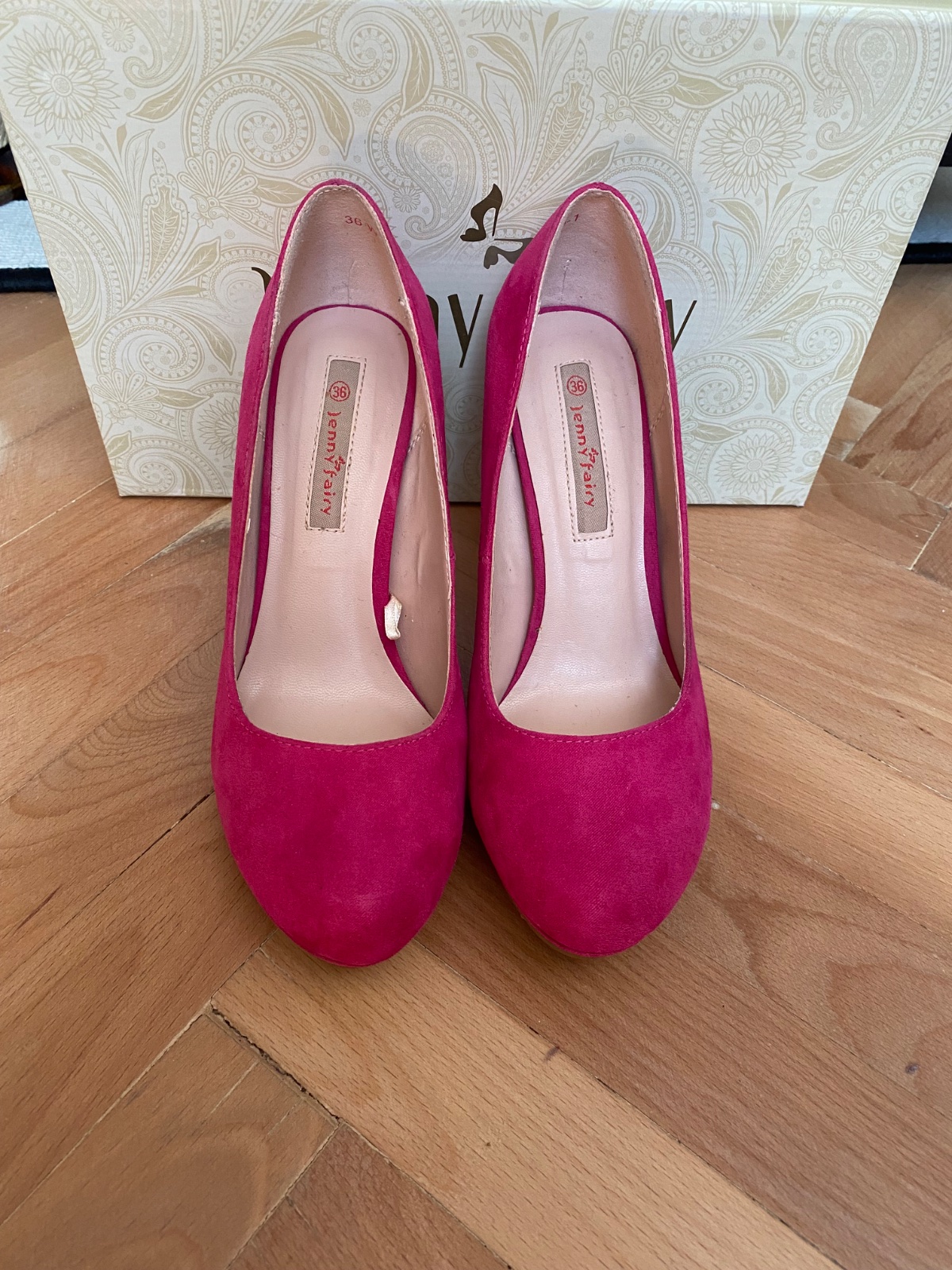 2x obuté ružové (cyklaménové) lodičky kupované V CCC, značka Jenny fairy, veľkosť 36, rozmery platformy ( 1 cm) a podpätku (9 cm) na foto. Bez poškodení, cena 8€ +poštovné